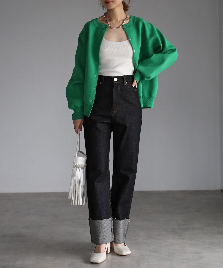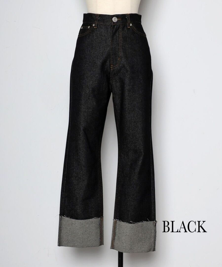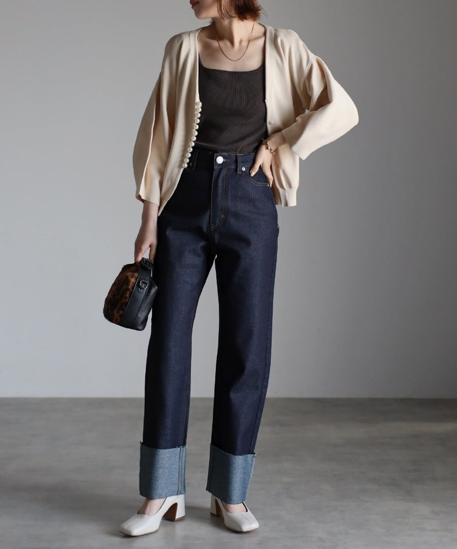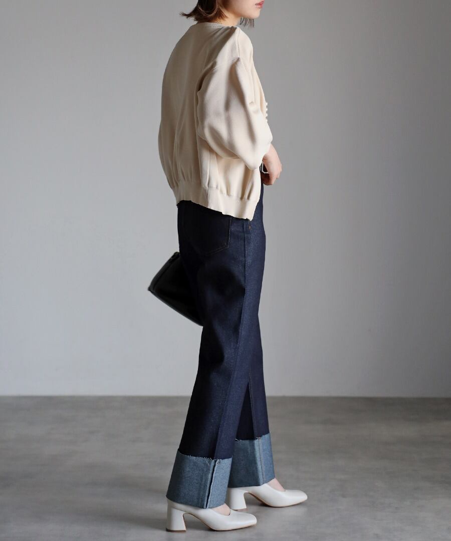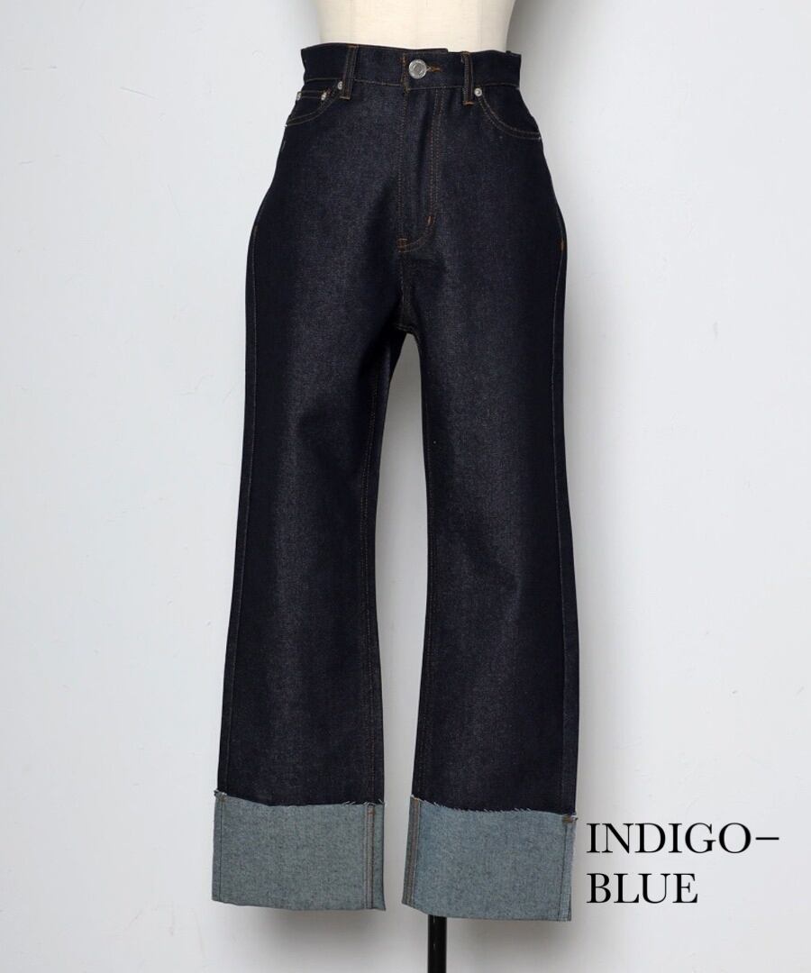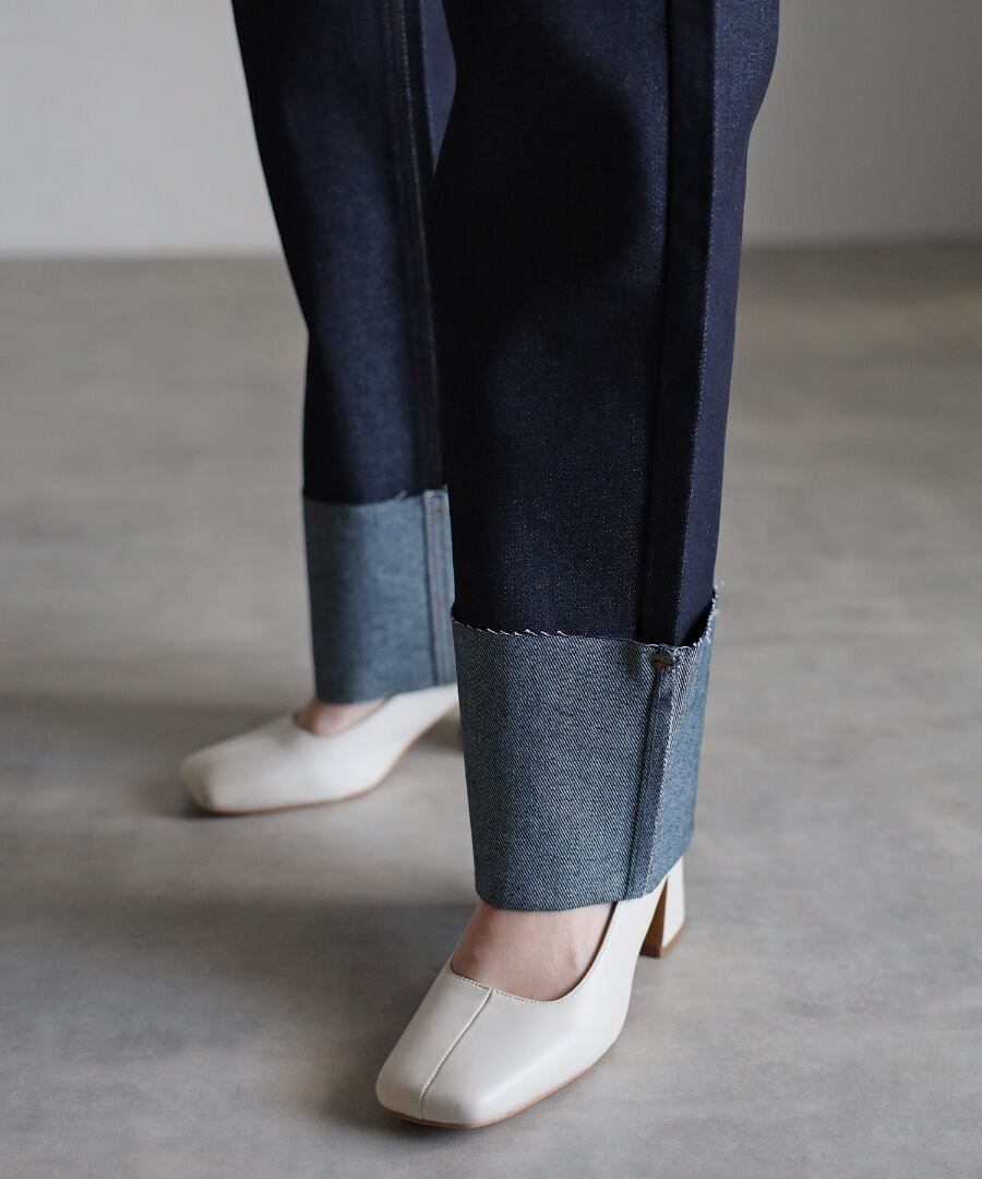 裾ロールアップデニムパンツ