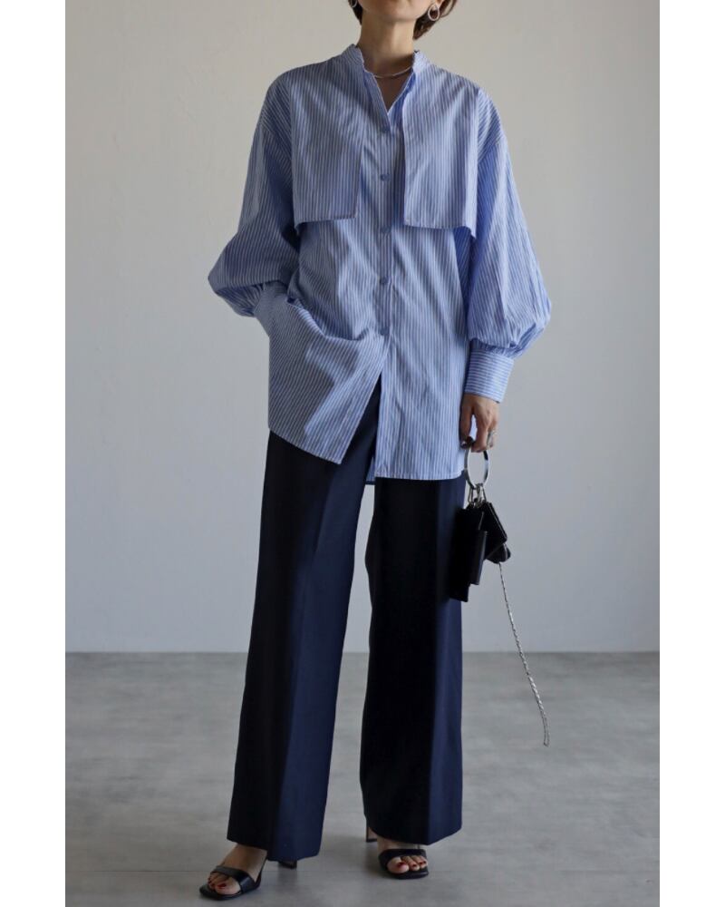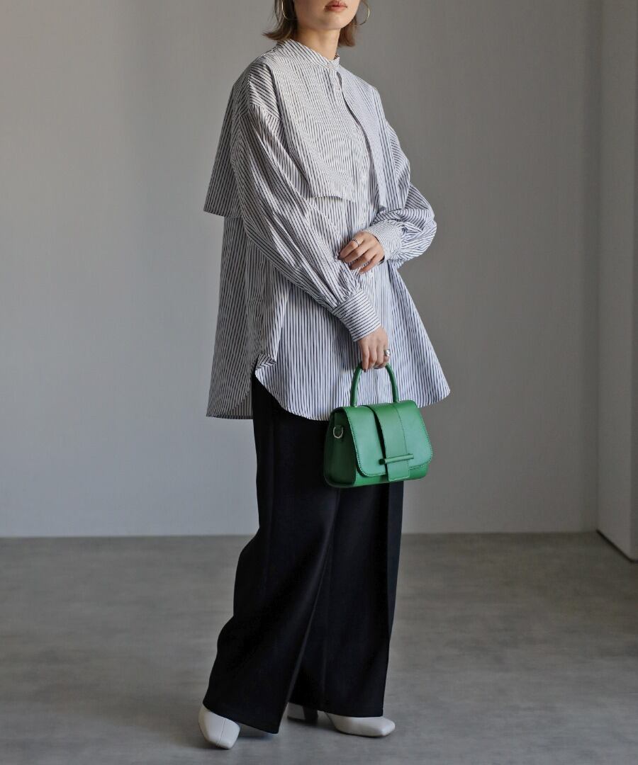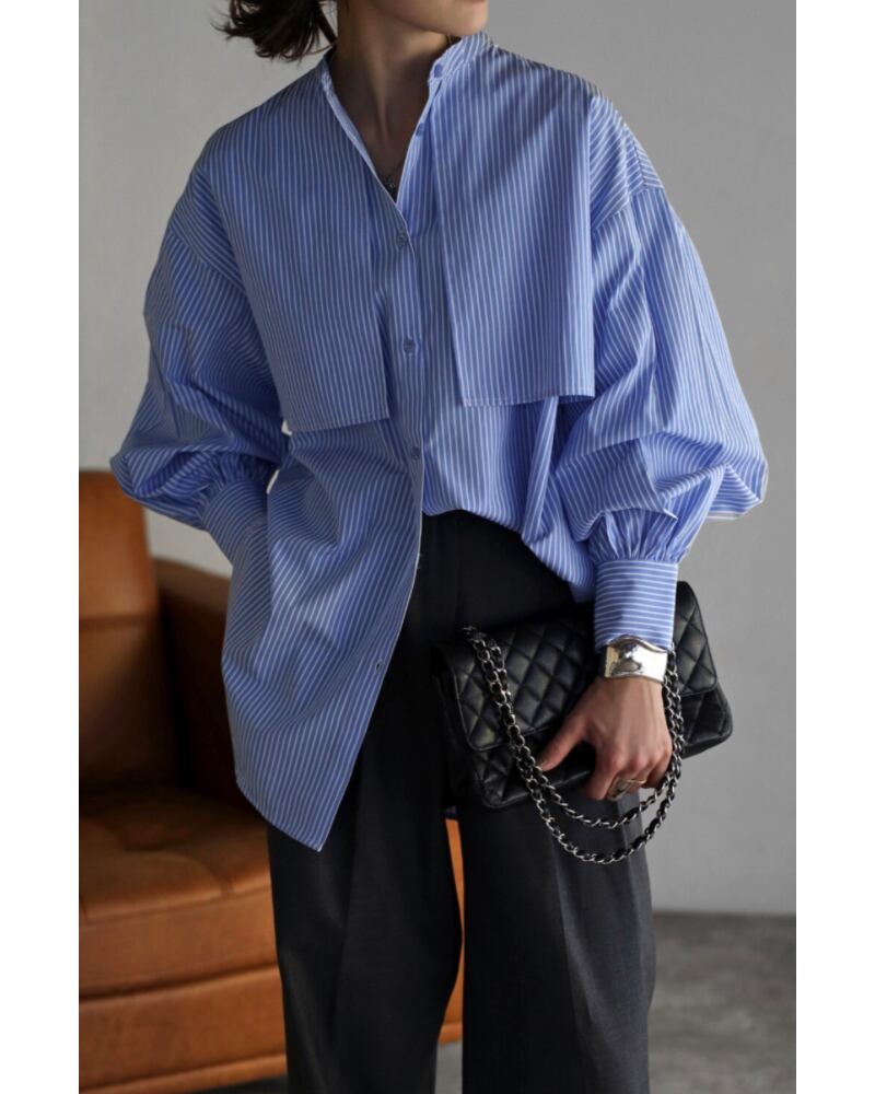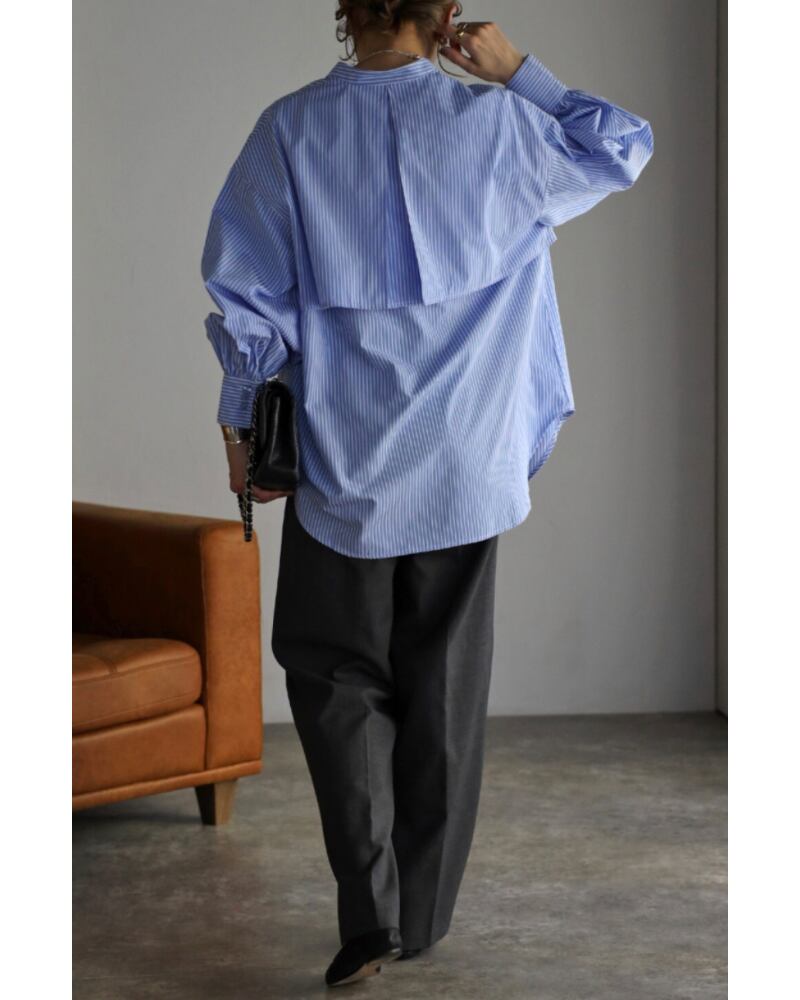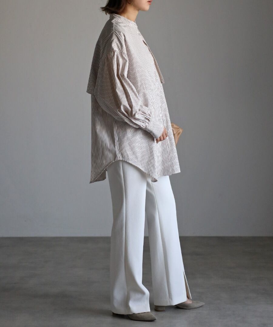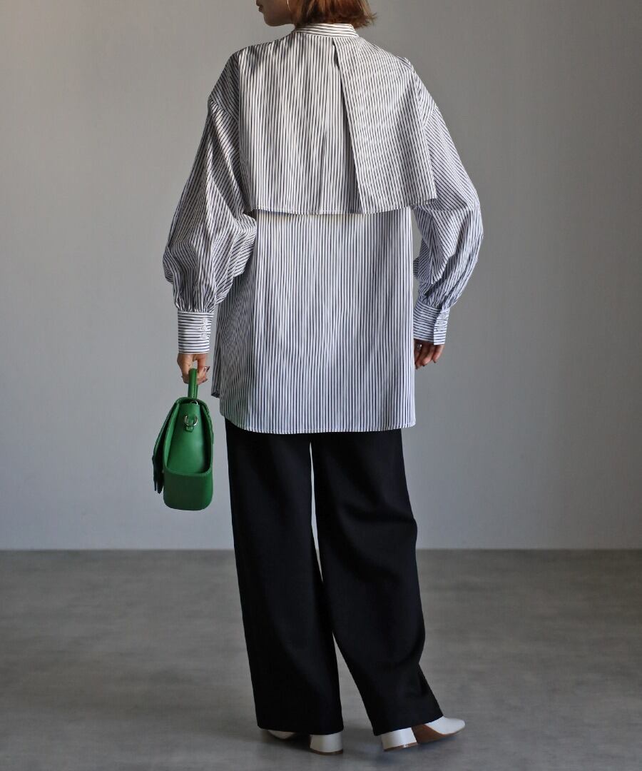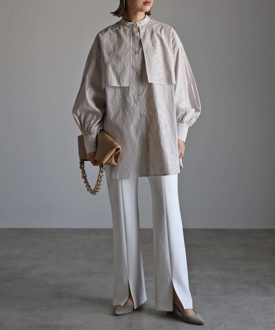 爽やかな印象のストライプ柄とバンドカラーデザインは、オールシーズンご着用していただけます。