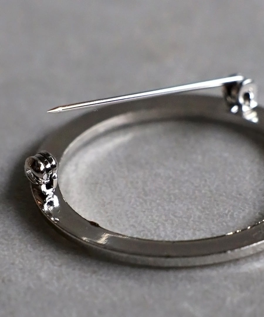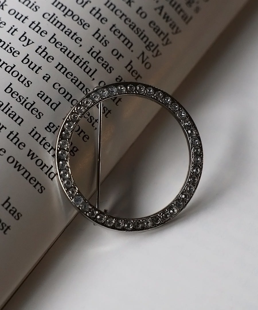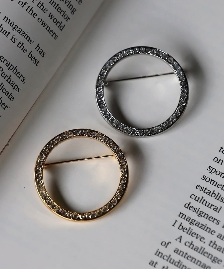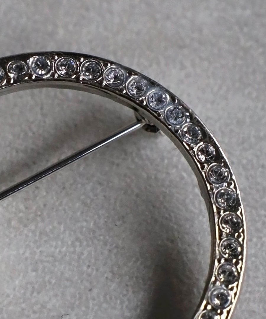円型のパーツにビジューがあしらわれた高級感のあるブローチ。