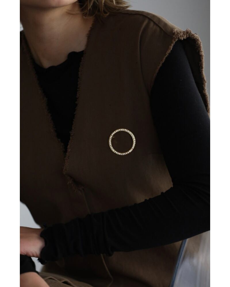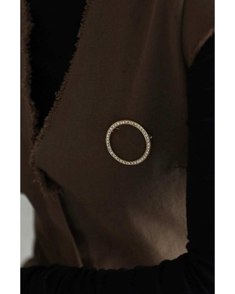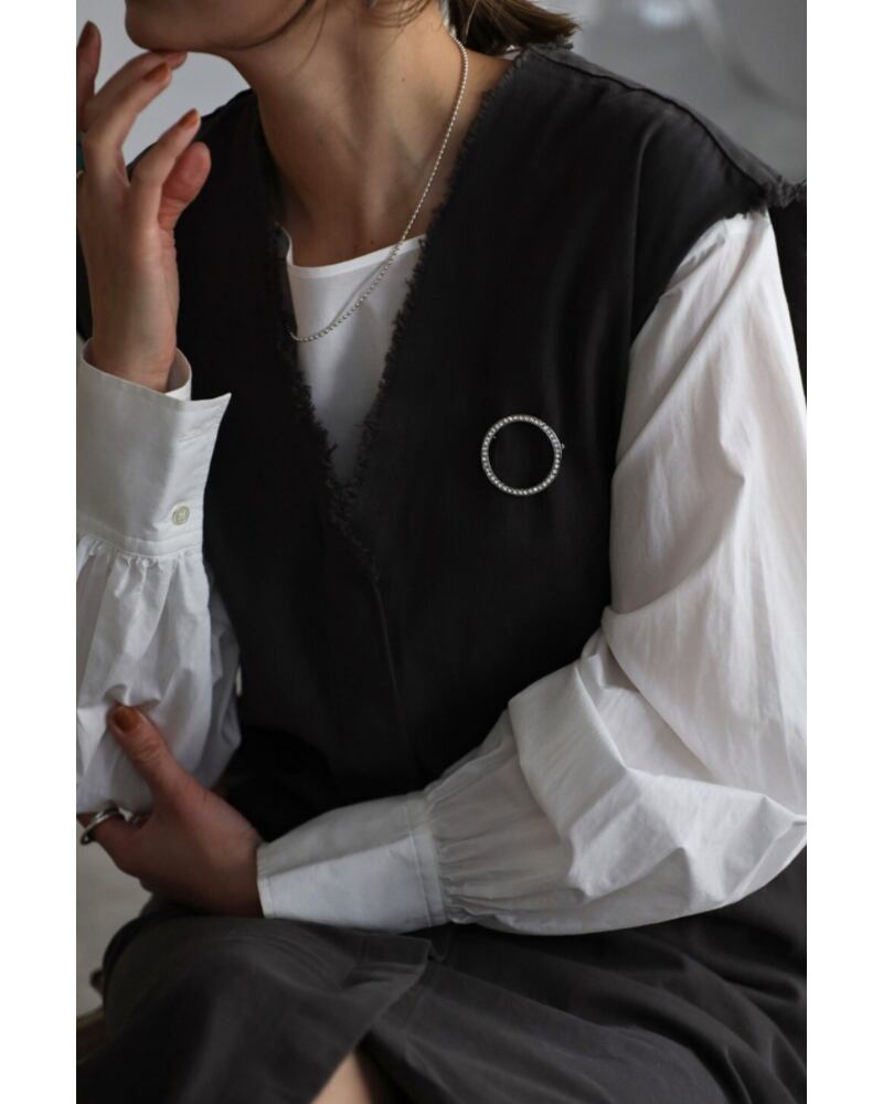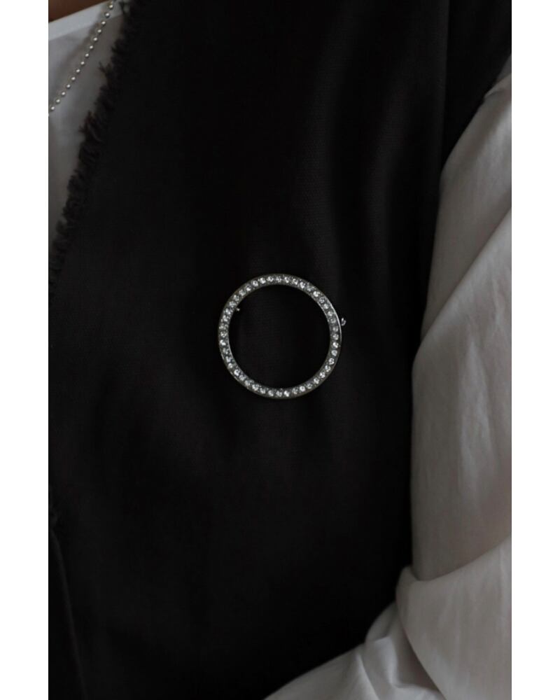 円型のパーツにビジューがあしらわれた高級感のあるブローチ。
