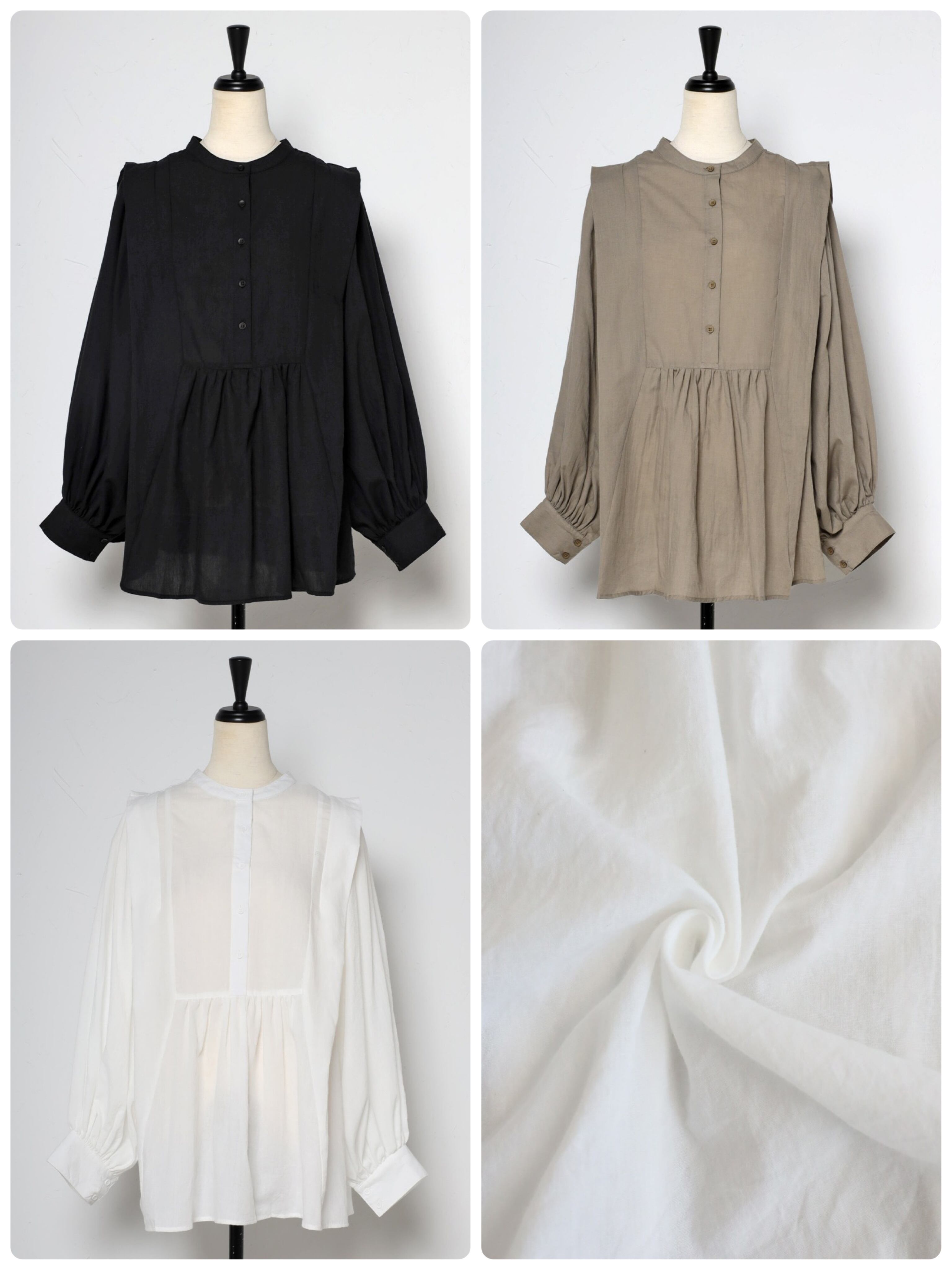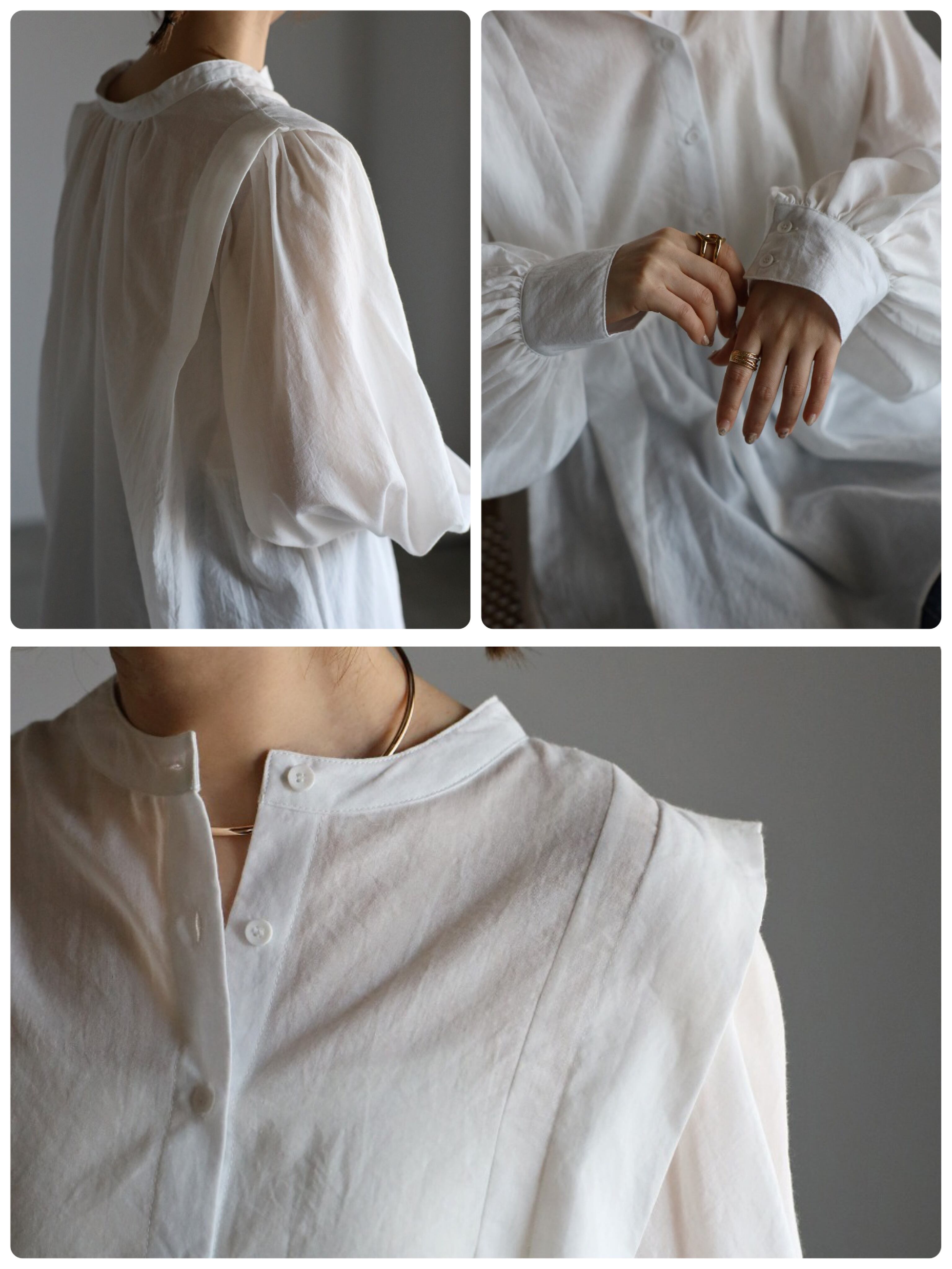 ネック周りはスッキリとしたバンドカラーデザイン。