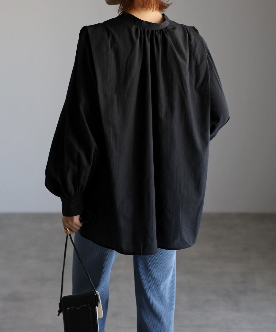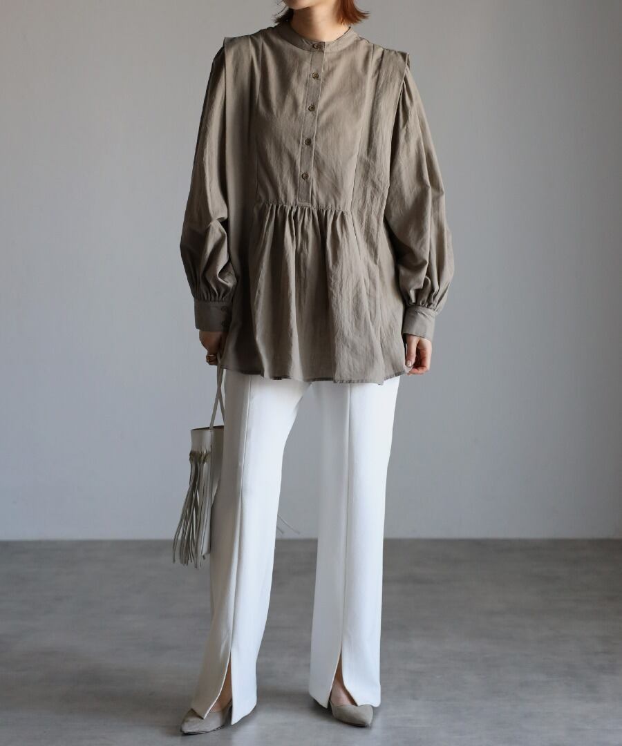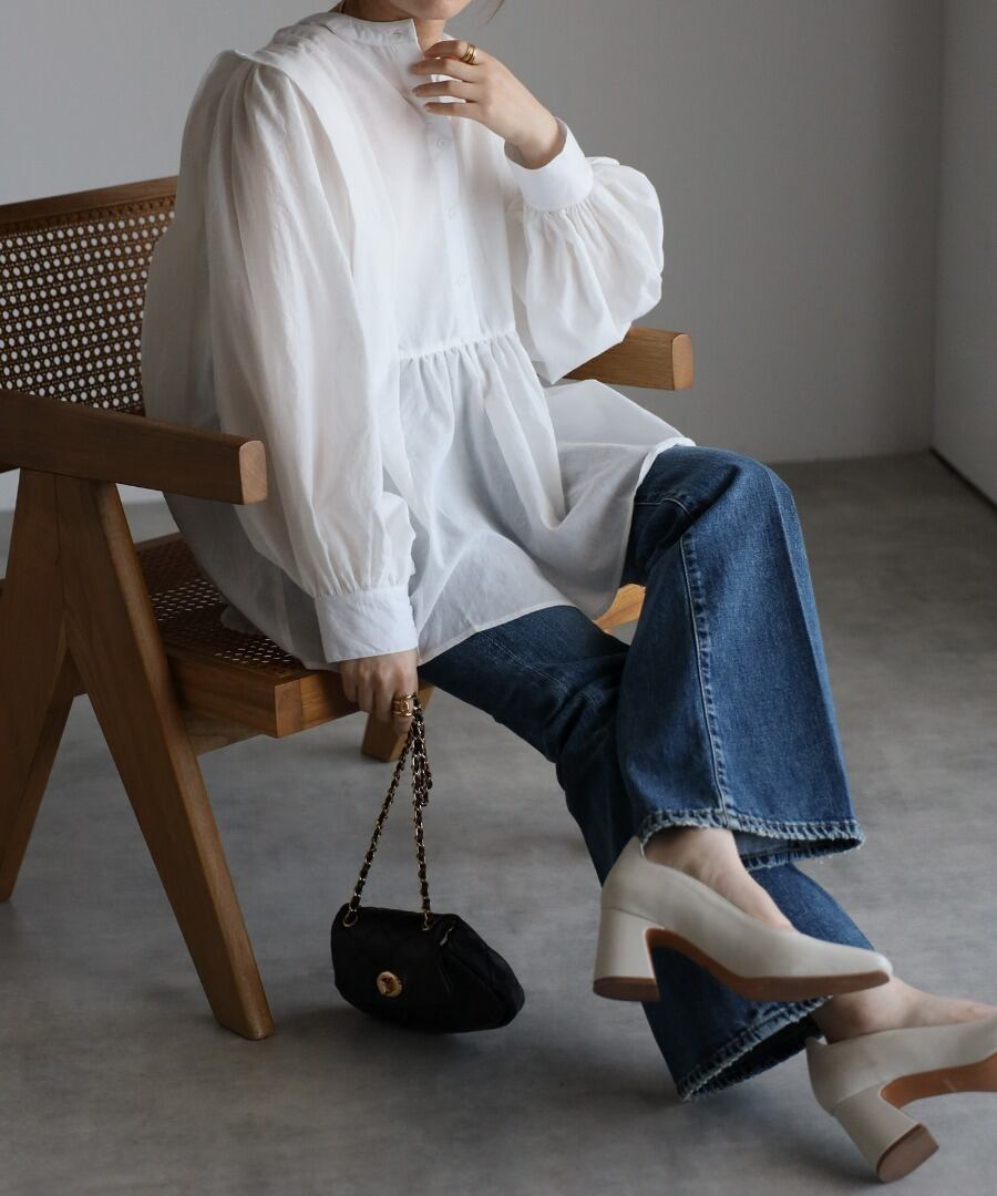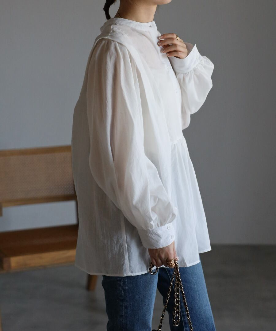 さらっとしたシャツ素材が肌触りの良いシャツブラウス。