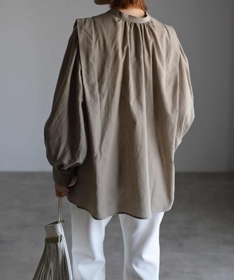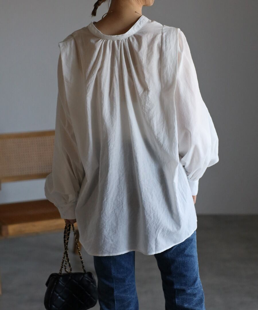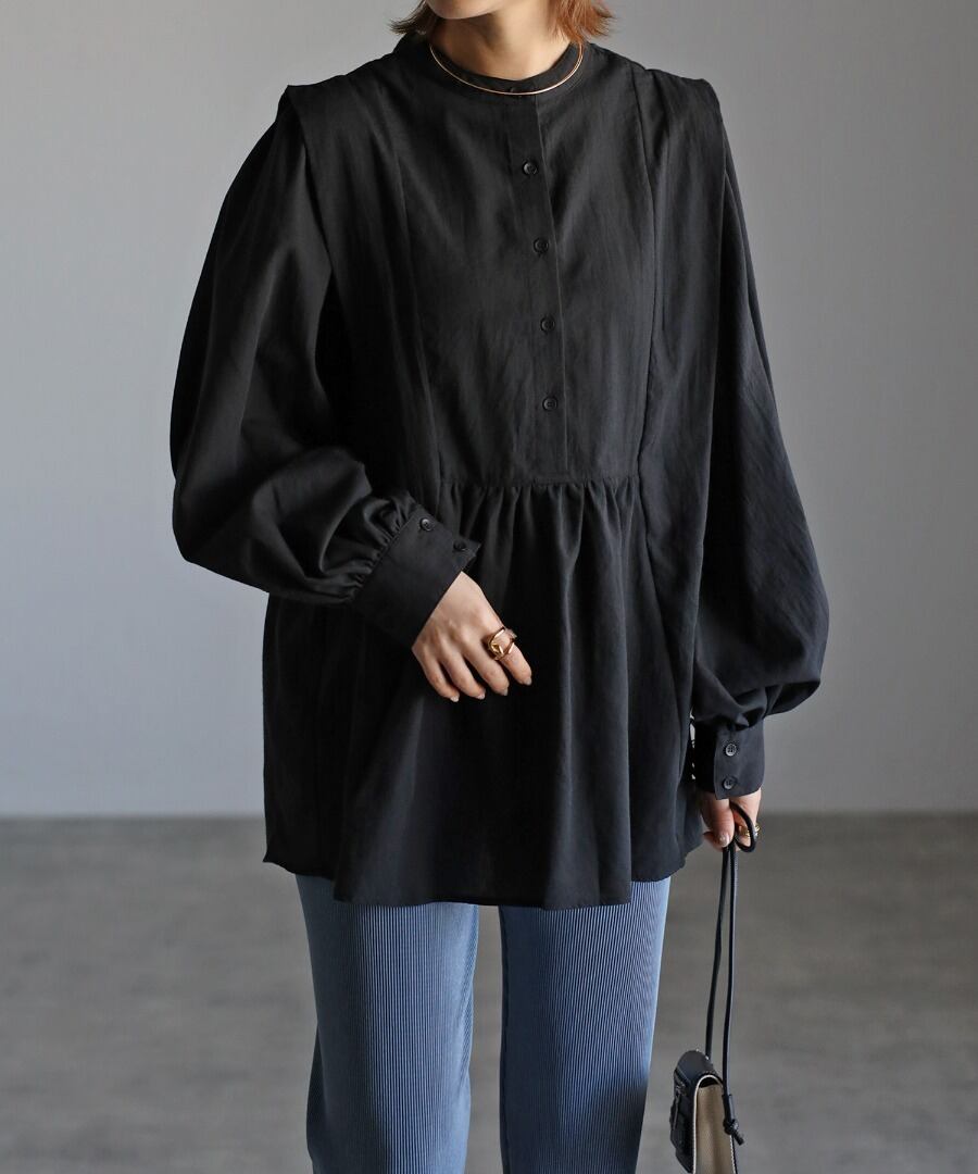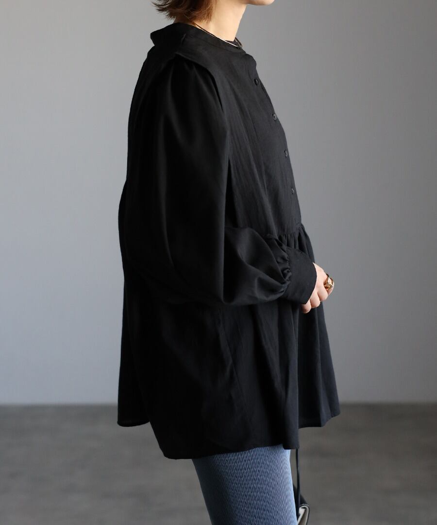 さらっとしたシャツ素材が肌触りの良いシャツブラウス。
