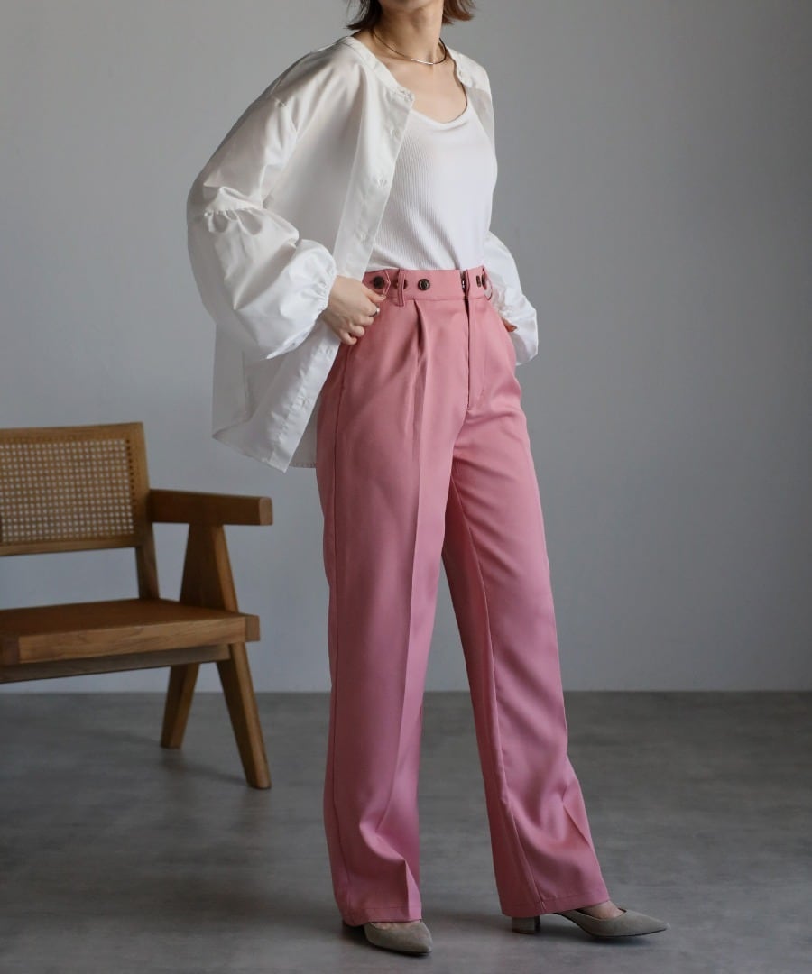 ネックはバンドカラーで顔周りをスッキリとさせてくれます。