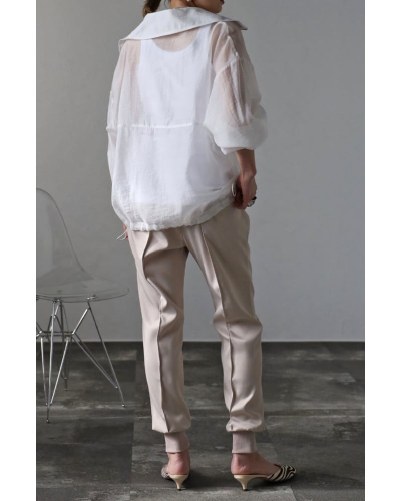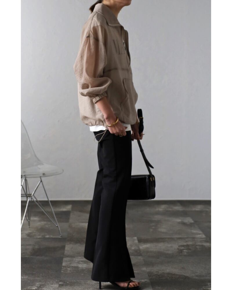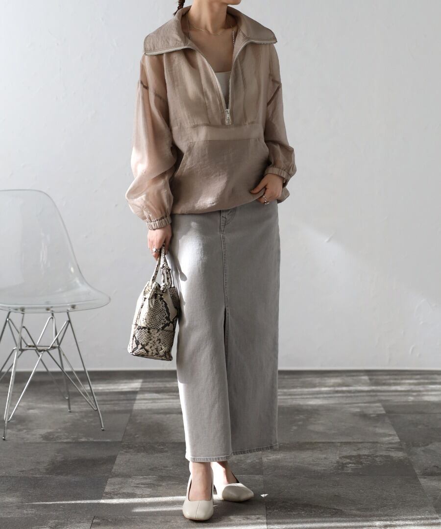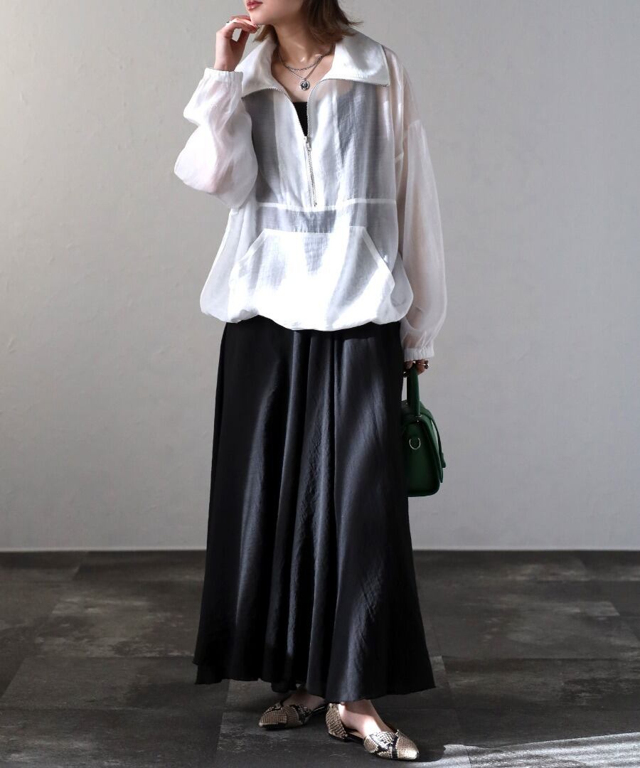 トレンドのアノラックプルオーバーのデザインに、キレイめに着られるシアー素材が登場。