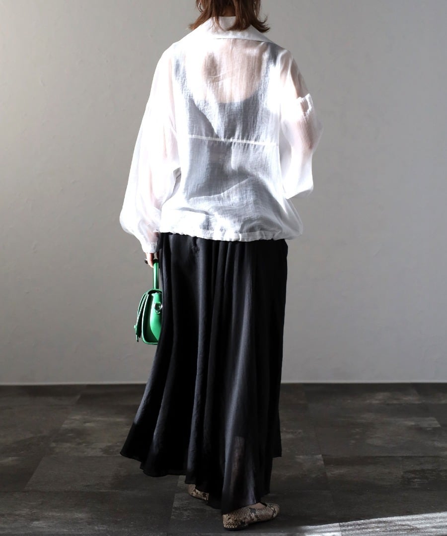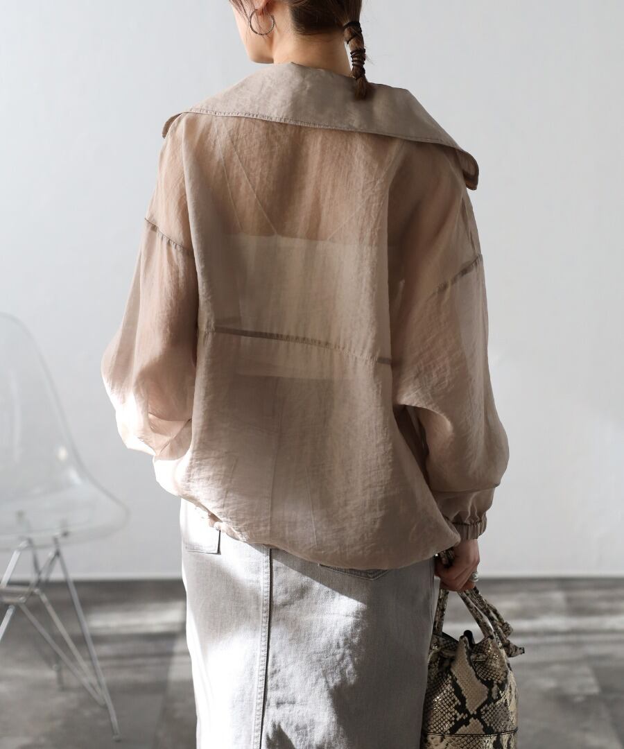 カジュアルなデザインながらシアー素材が女性らしい雰囲気を演出してくれる一枚です。