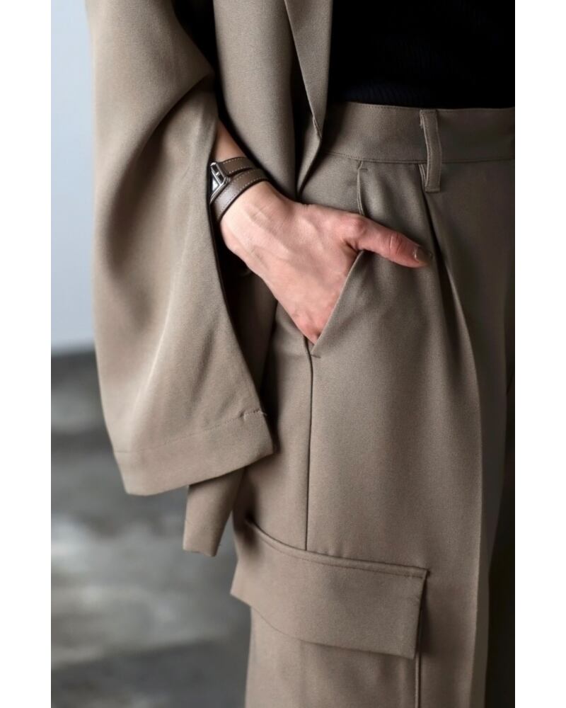 ※同素材のスリットスリーブテーラードジャケットとセットアップで着用いただけます。