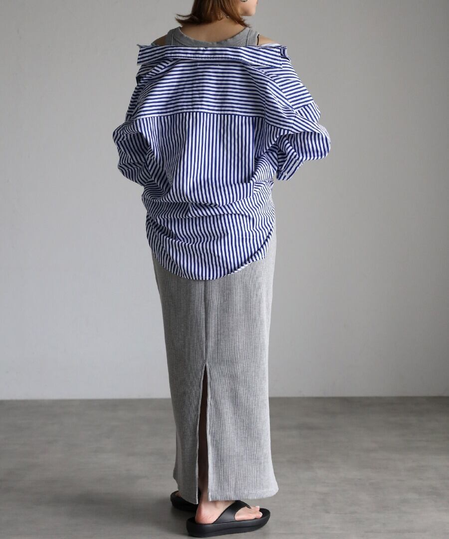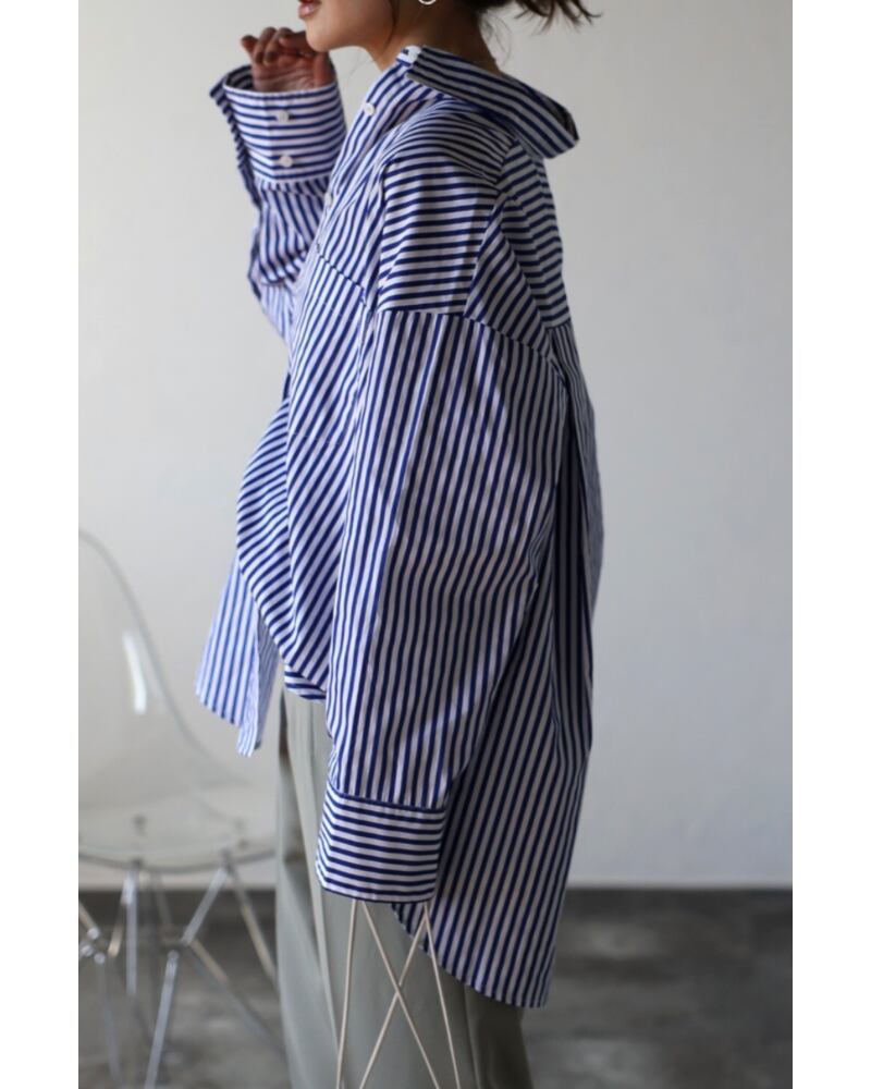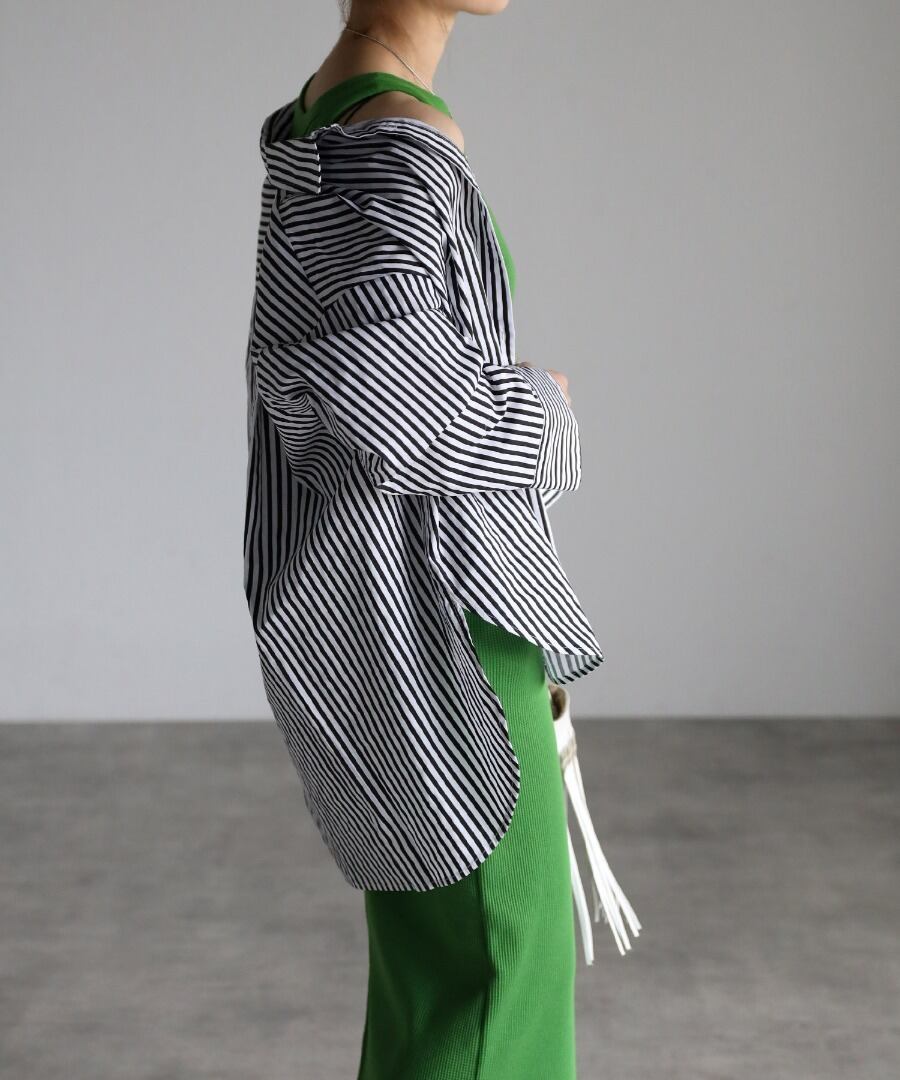 トレンド感のあるストライプ柄が映える、ビッグサイズのシャツ。