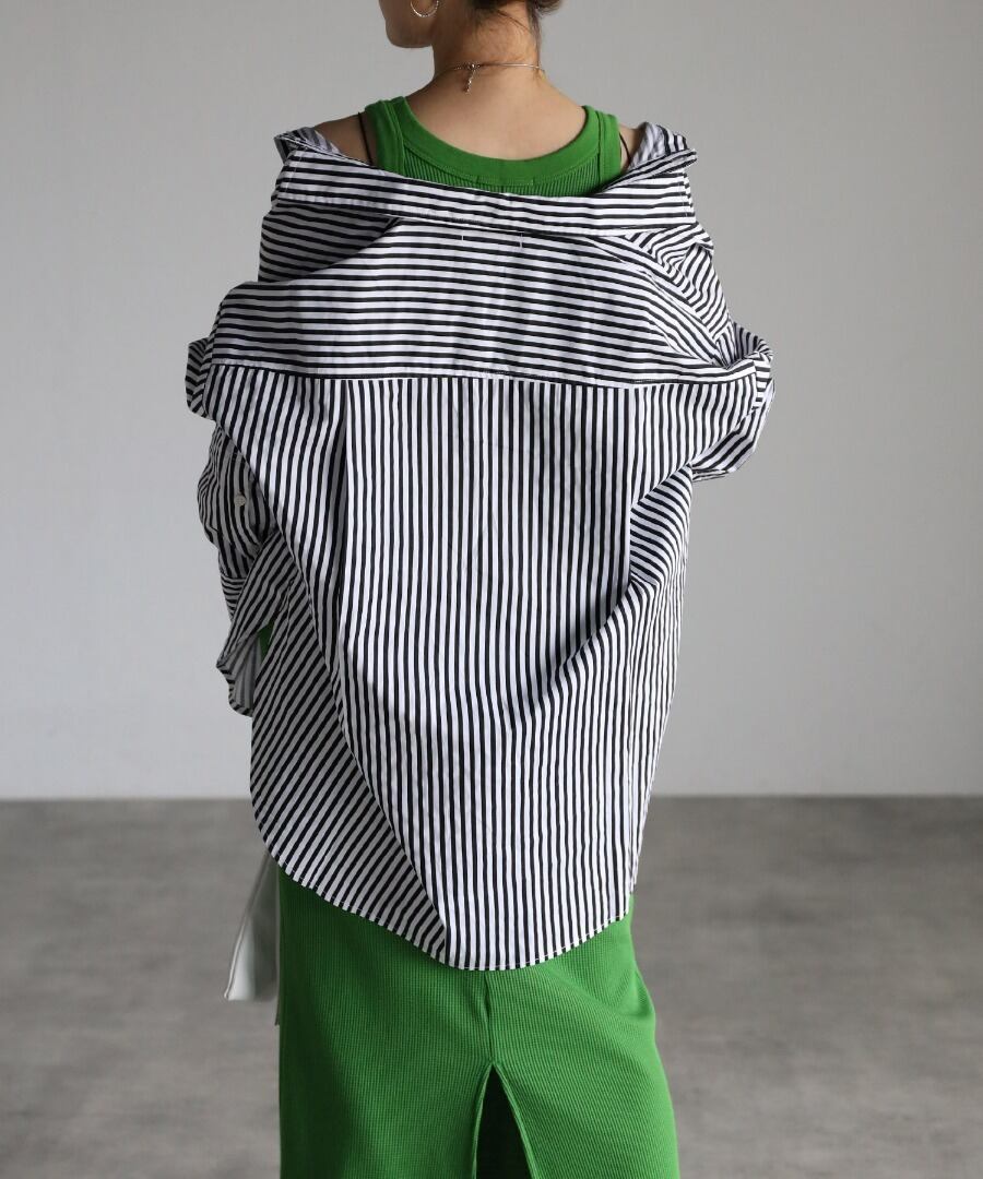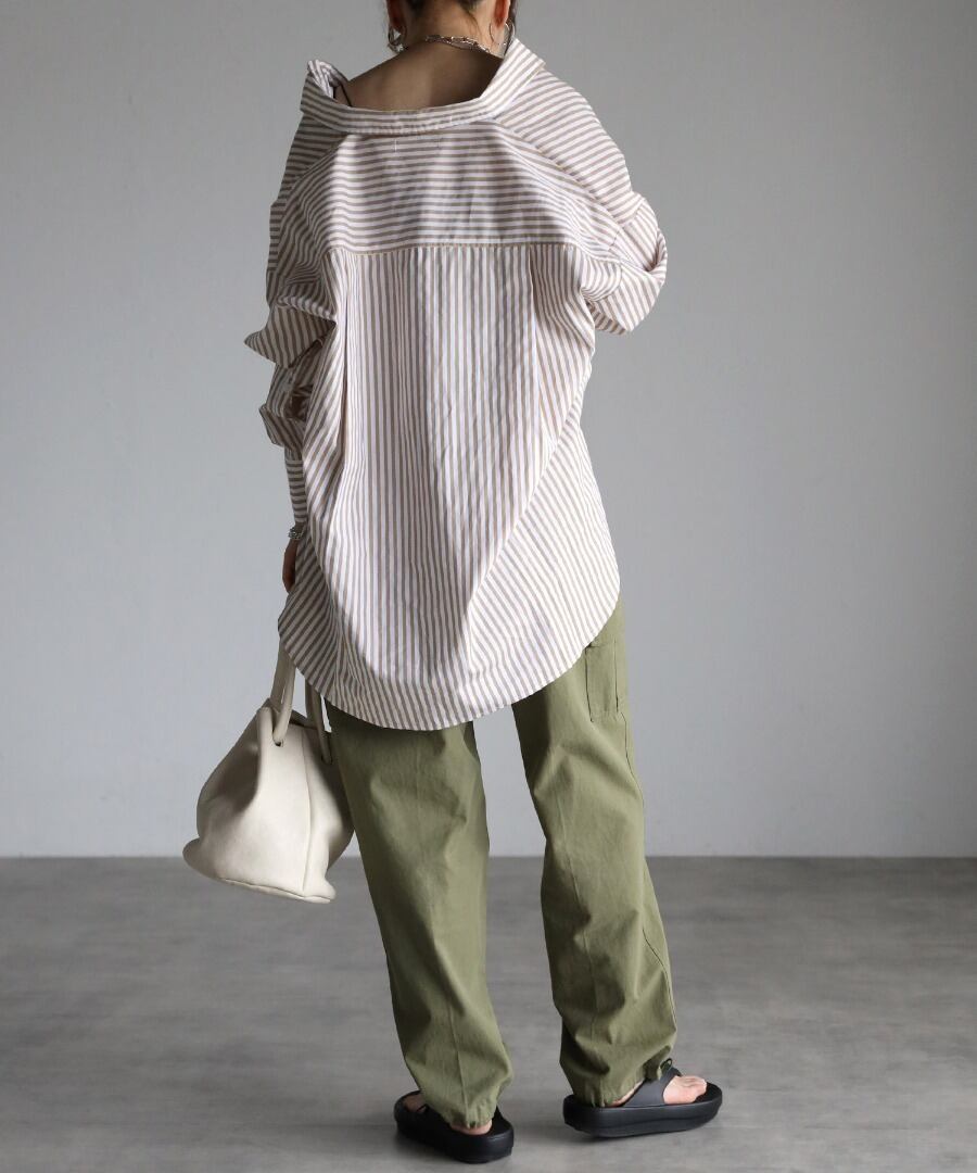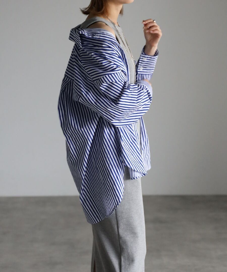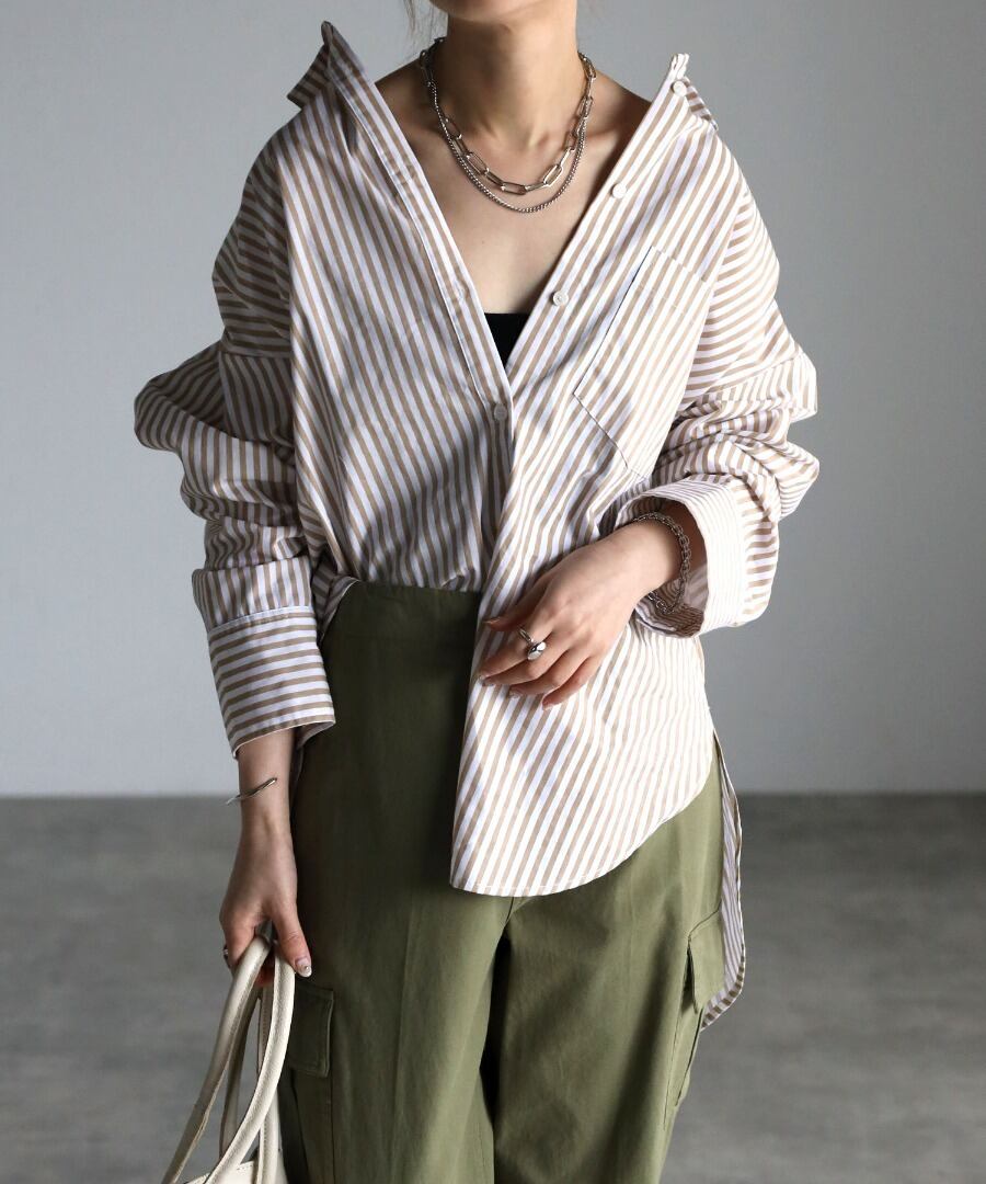 メンズライクにも着られるストライプ柄オーバーサイズシャツ