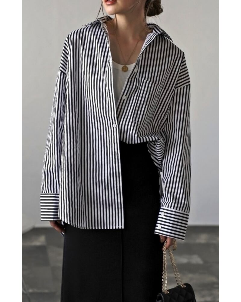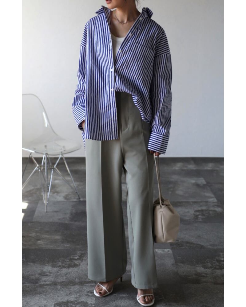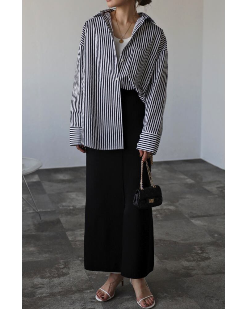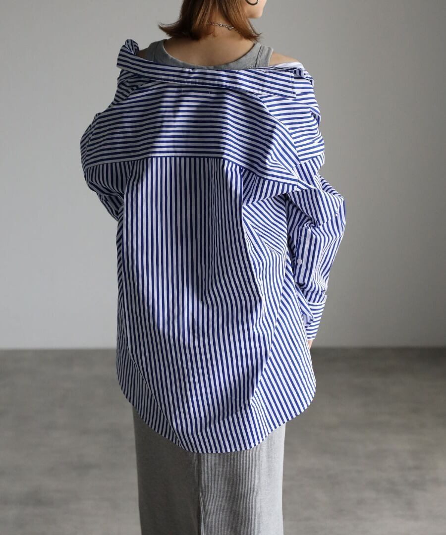 メンズライクにも着られるストライプ柄オーバーサイズシャツ