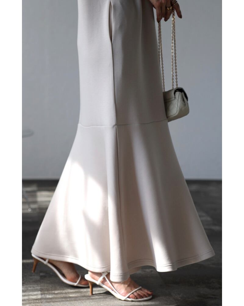 裾のマーメイド切替が、上品な女性らしいスタイリングを演出してくれます。