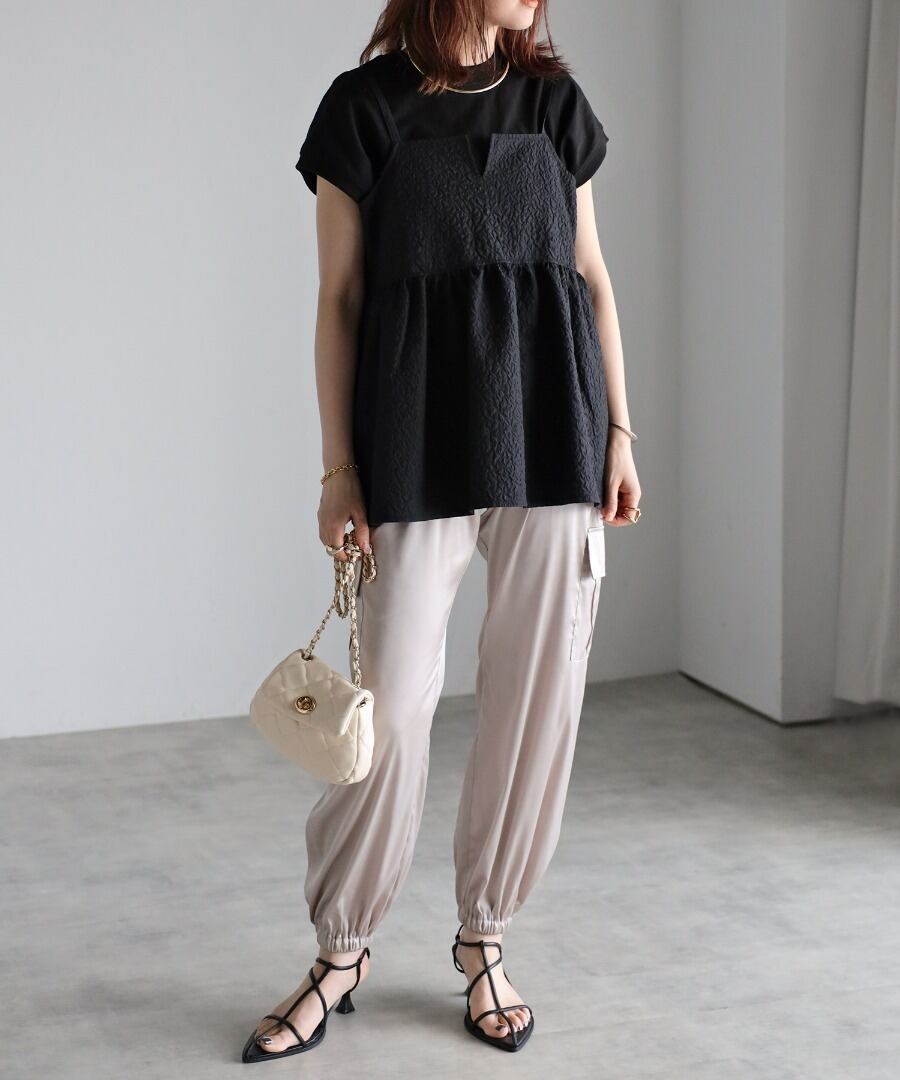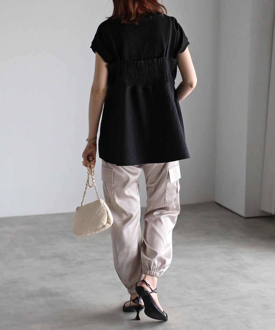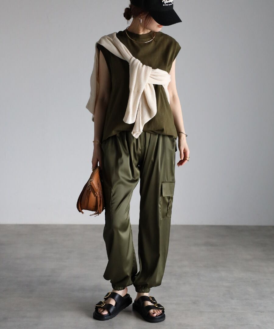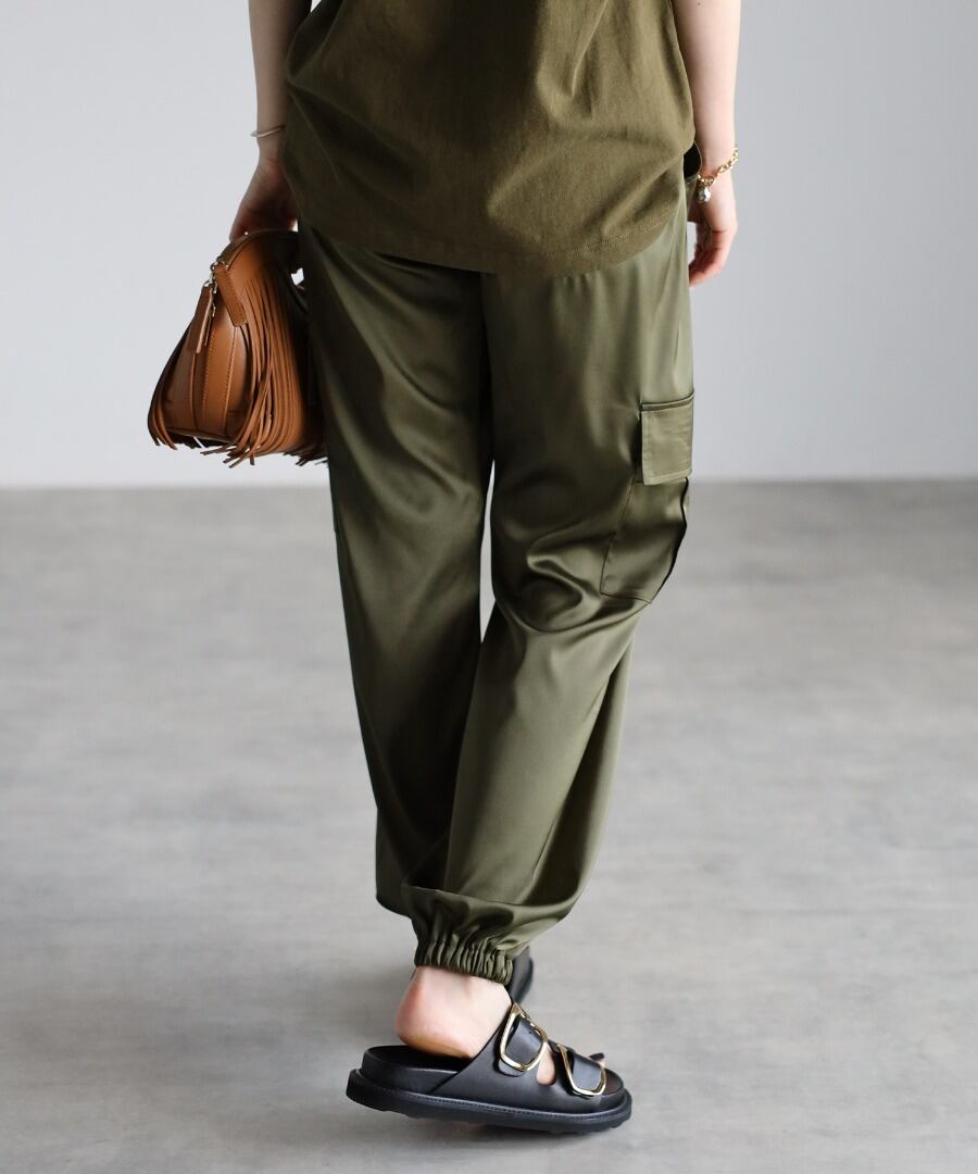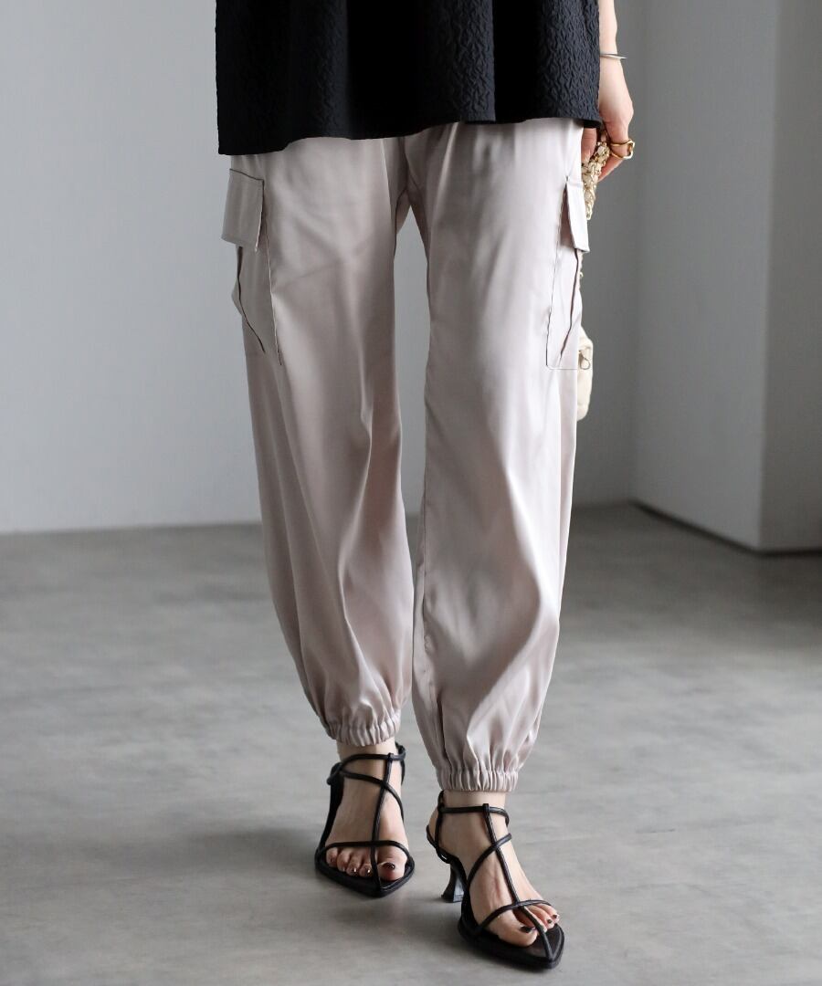 今季トレンドのカーゴパンツに、サテン素材が登場。