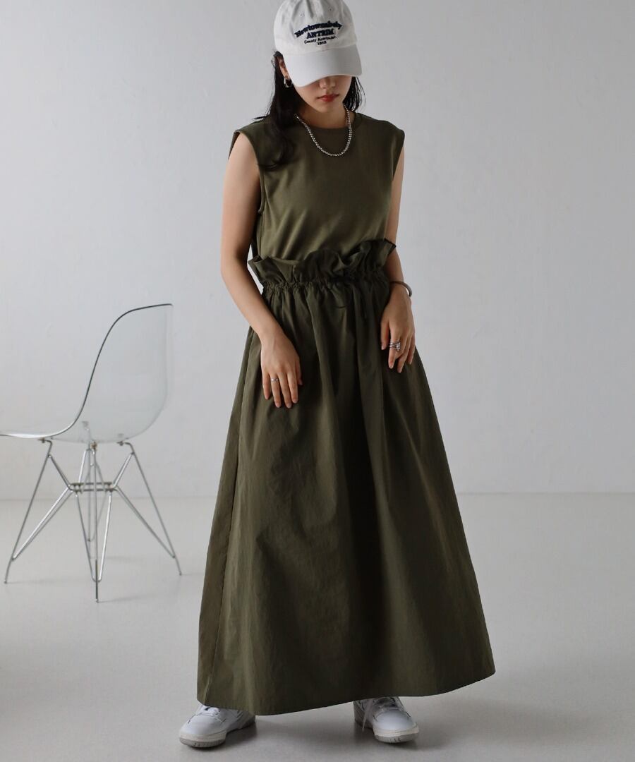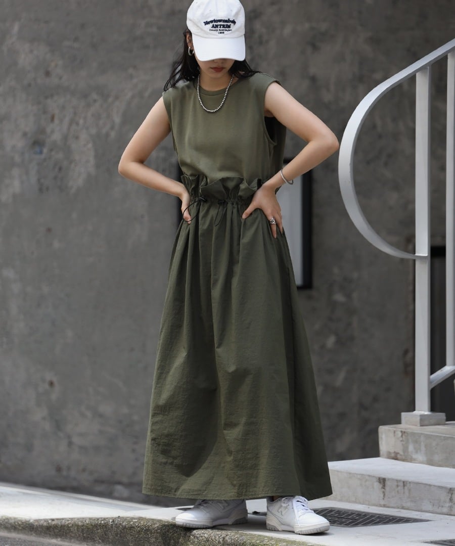 一枚で旬コーデが決まる!異素材ドッキングワンピース!