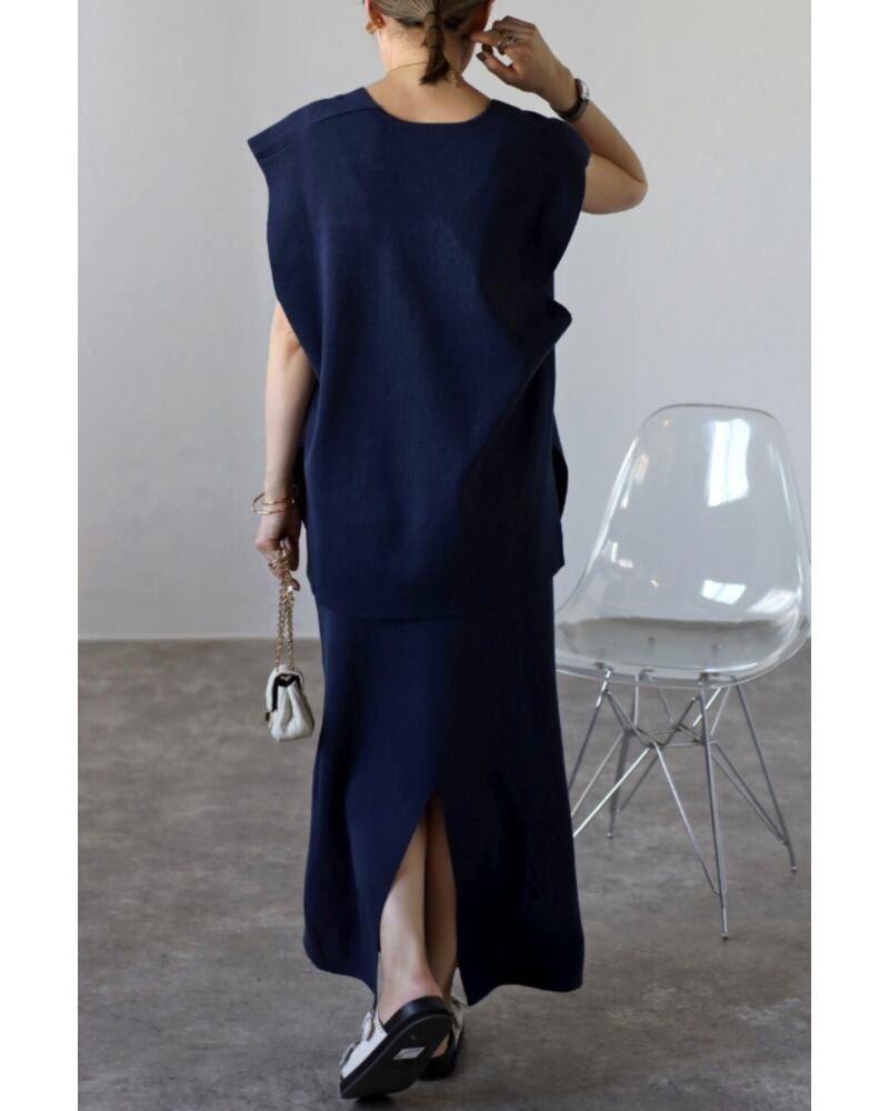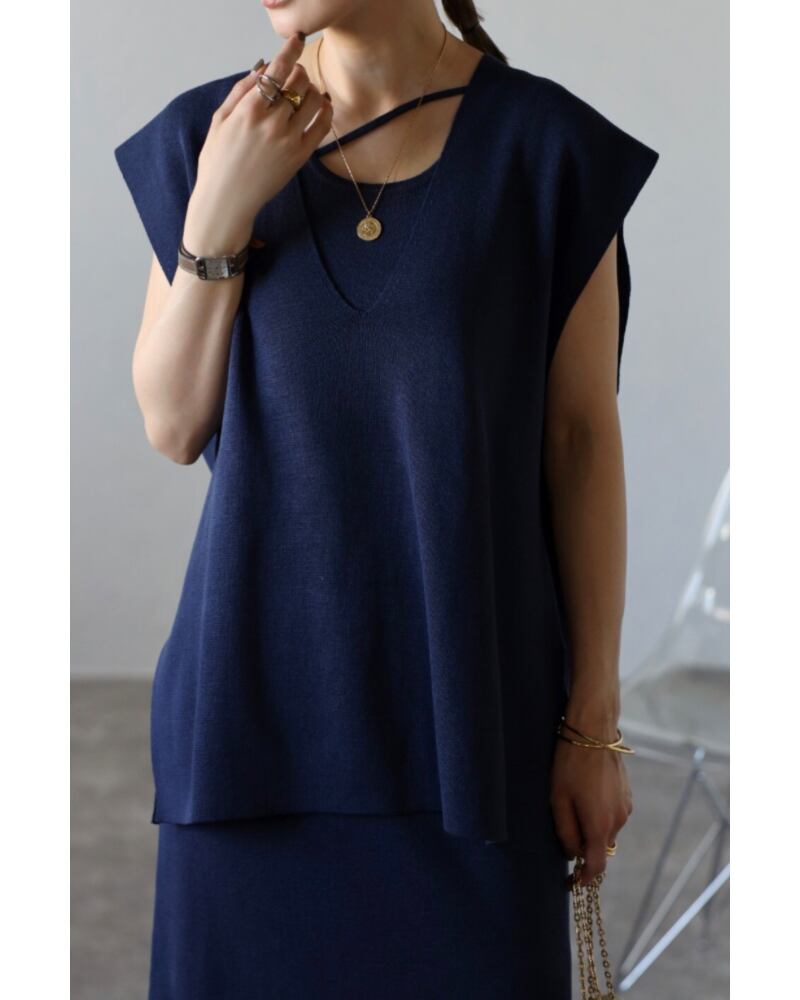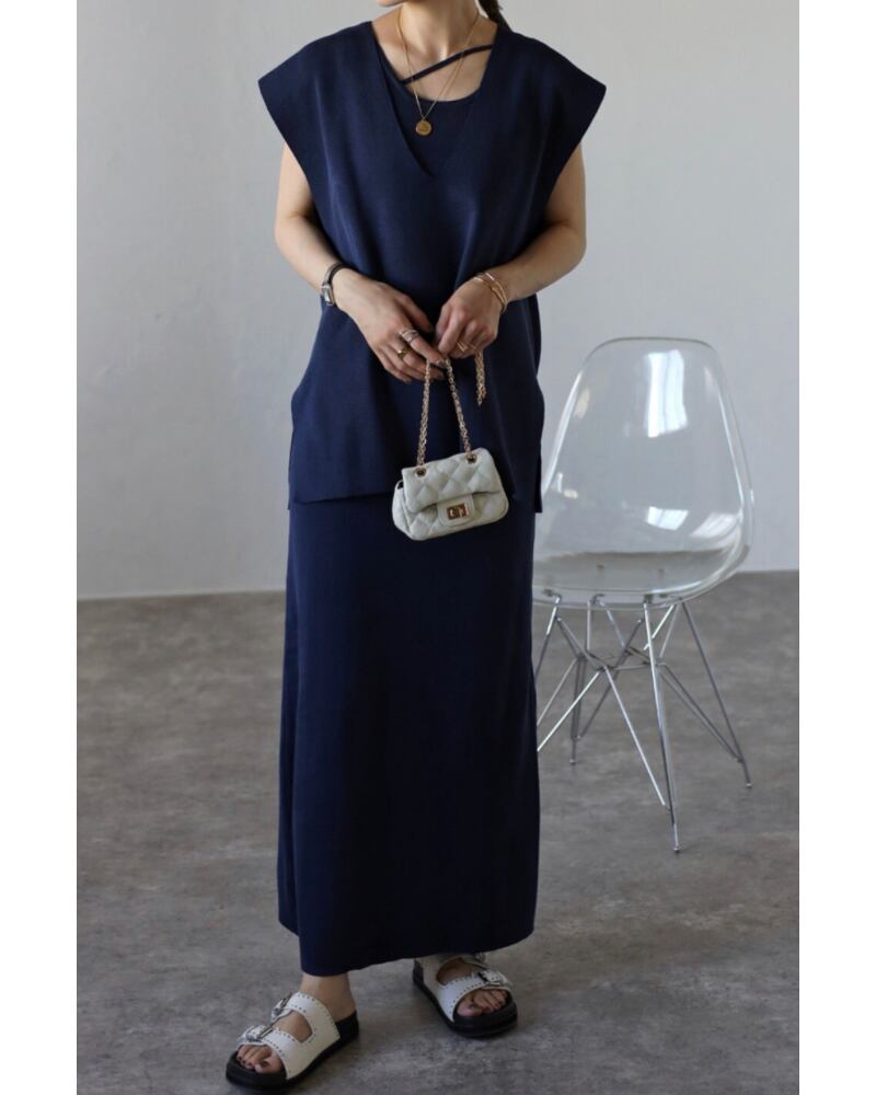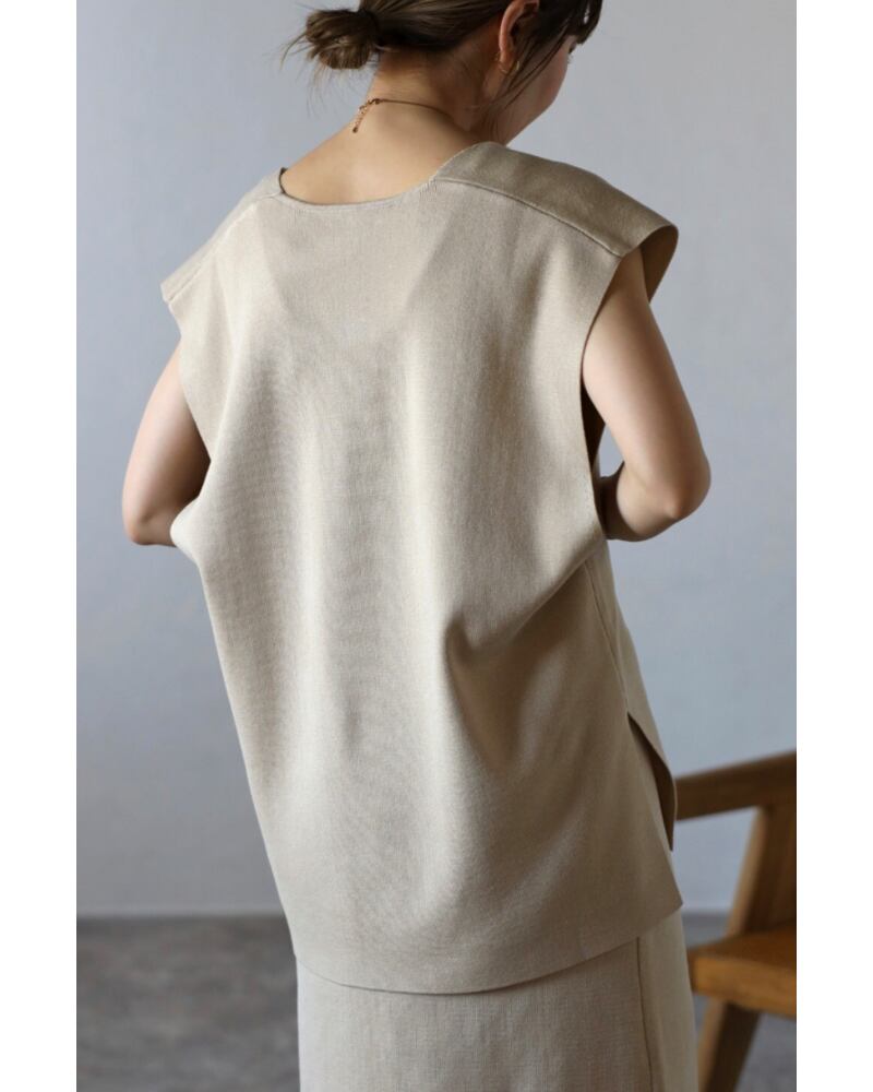 ※ ベストのインナーに合わせているのは、同素材の【リネンタッチデザインタンクワンピース】です。合わせるとセットアップコーデがお楽しみいただけます。