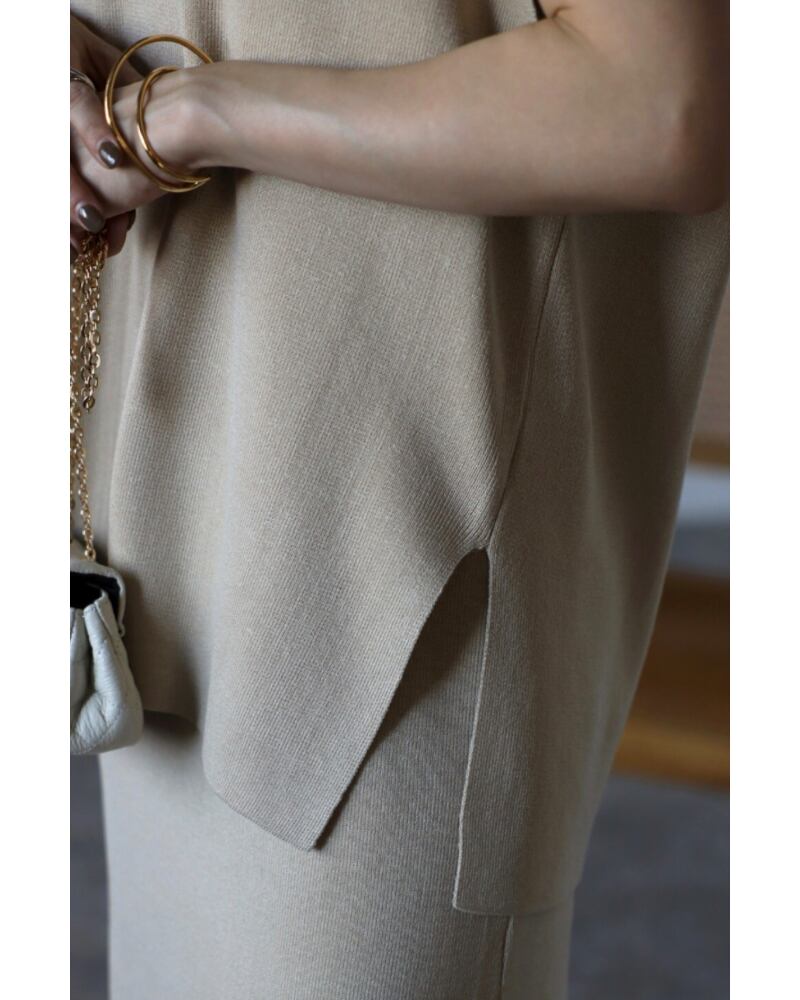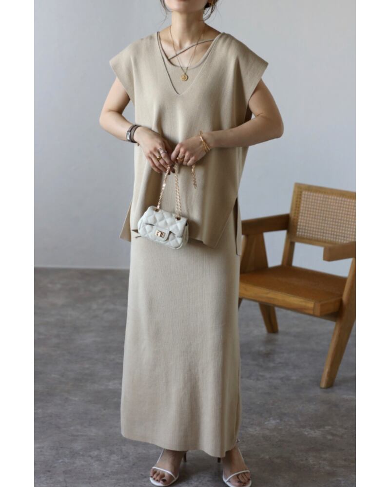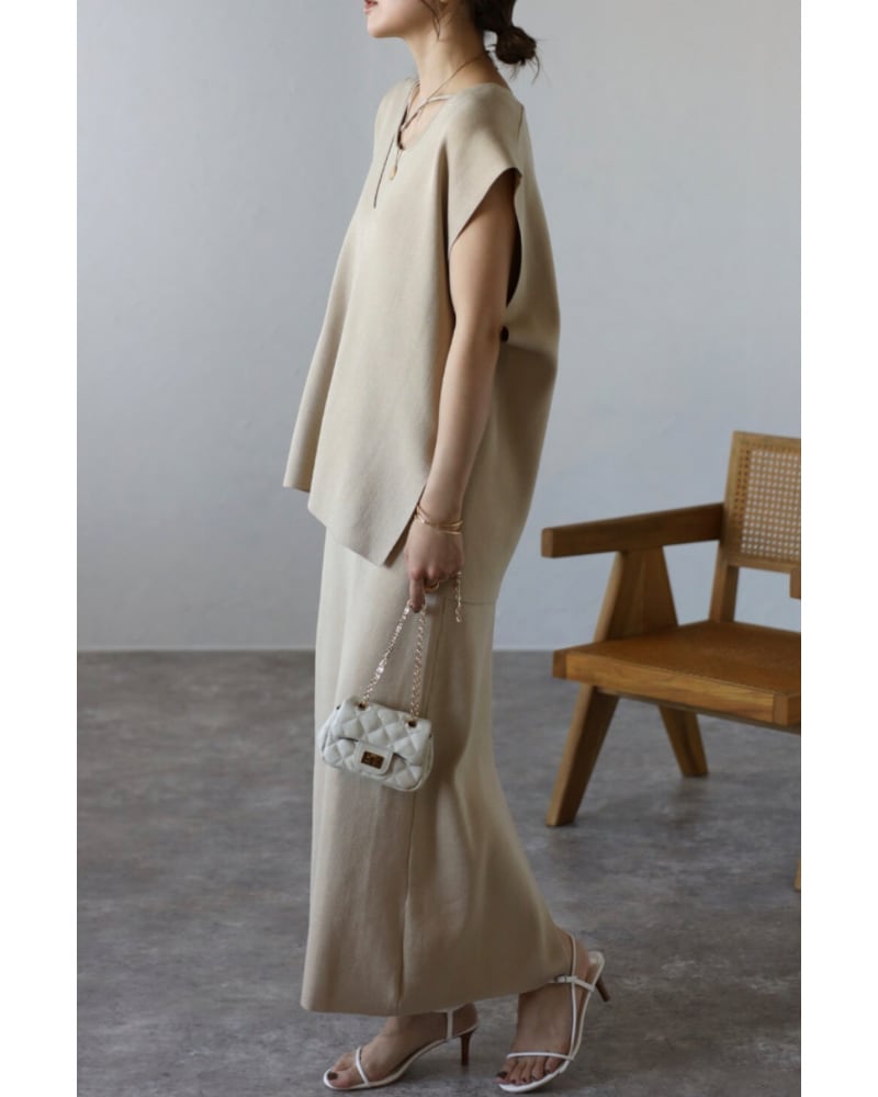 ヒップまで隠れる丈感に、サイドのスリットが抜け感を演出します。