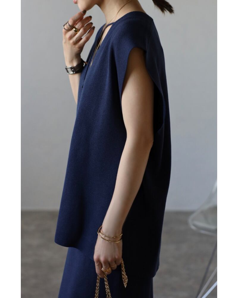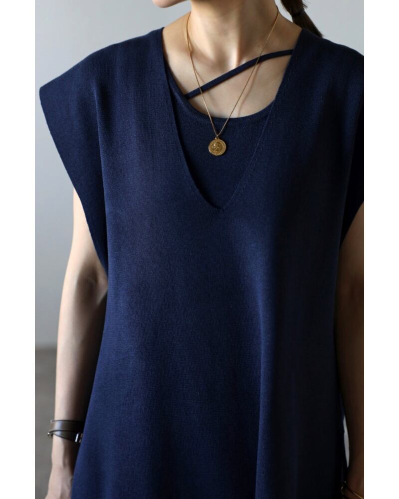 こなれ感のある深めのVネックが顔まわりをすっきりと見せてくれます。