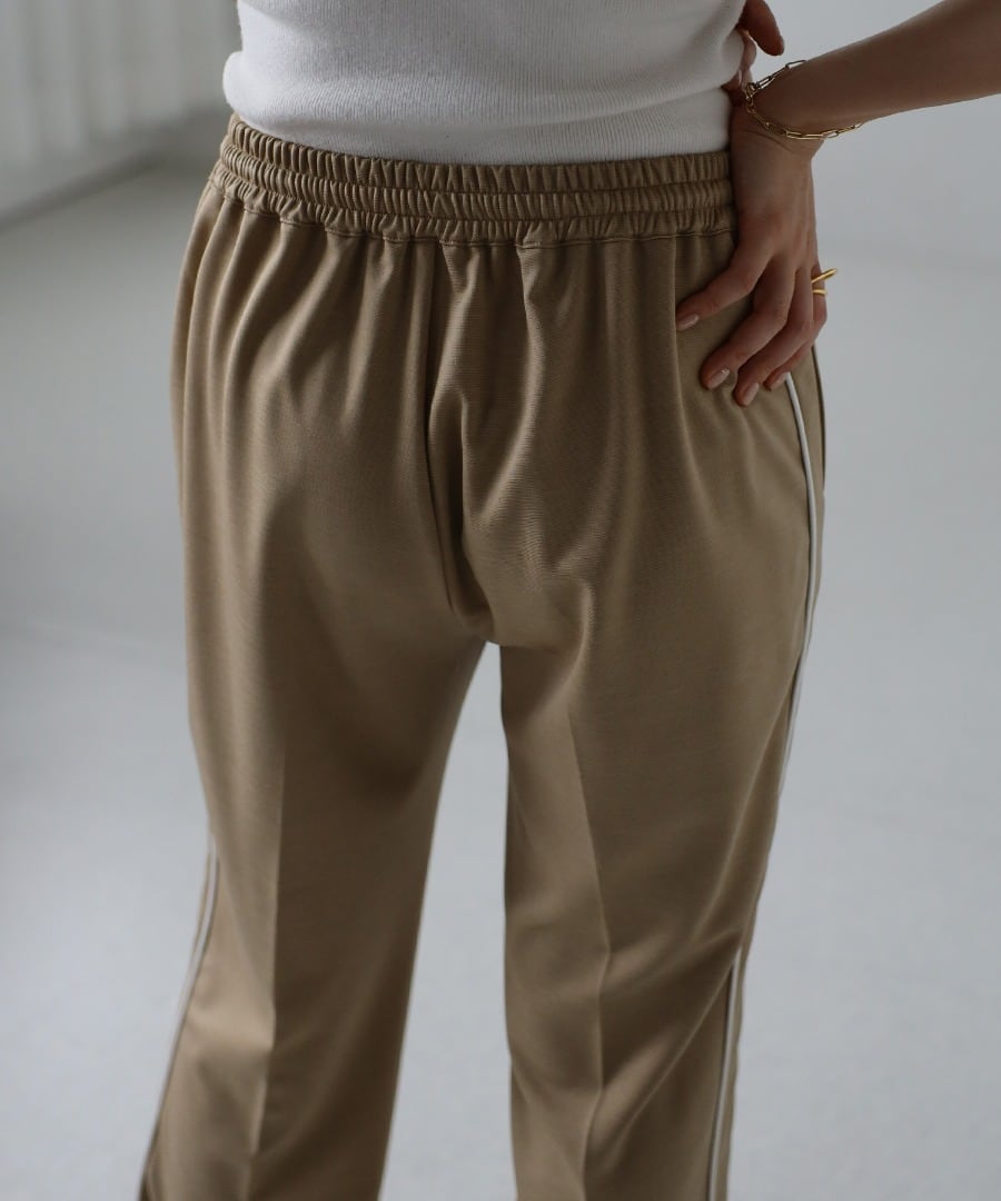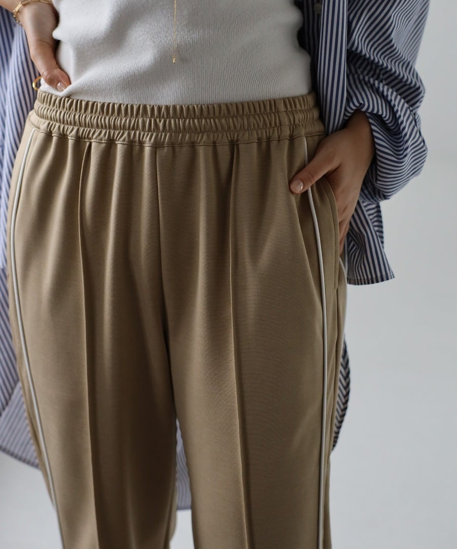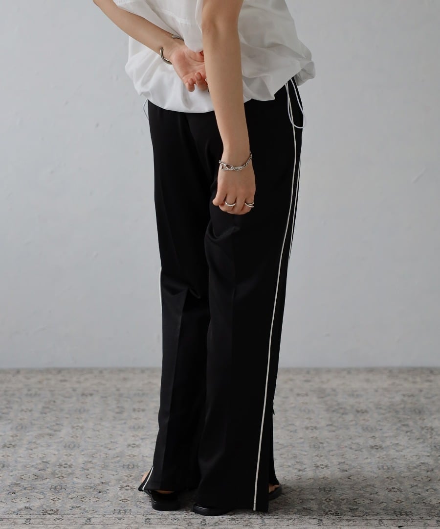 トレンドのライン入りディテールを大人っぽく配色パイピングでデザインしたスラックス。