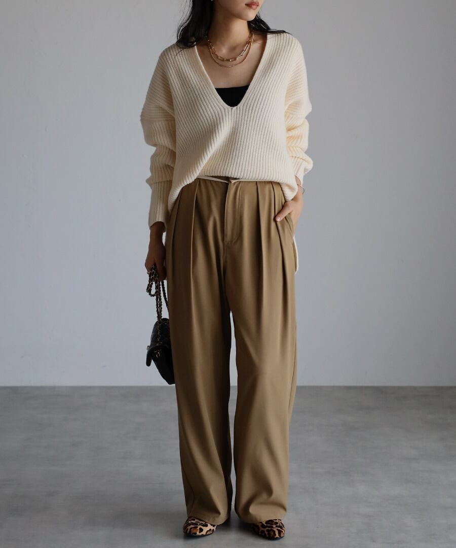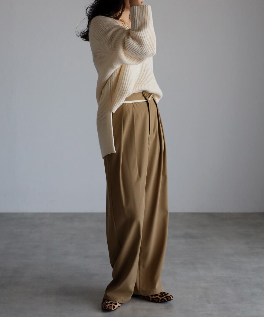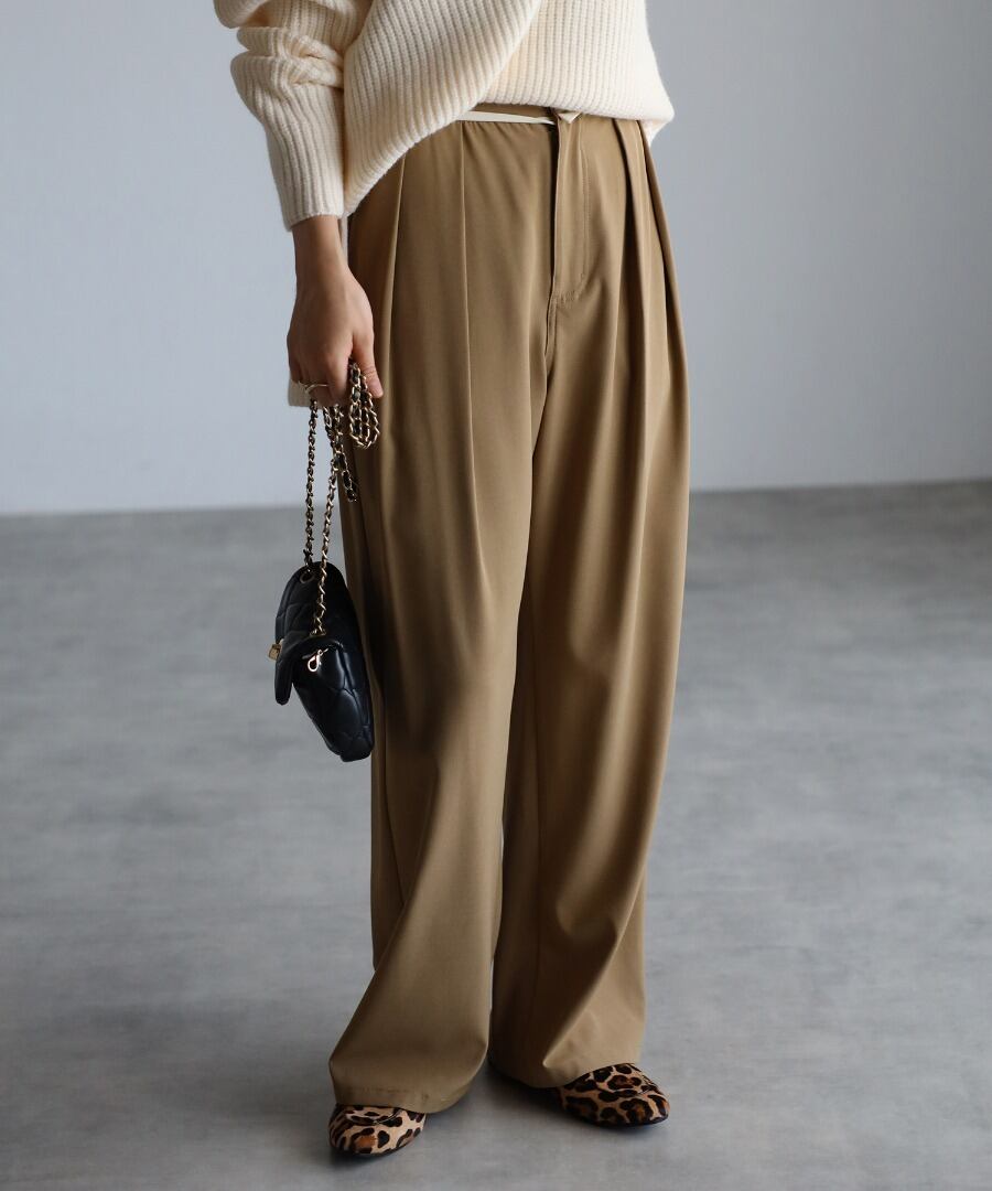 きちんと感漂うタック入りで、キレイなシルエットのワイドパンツ。
