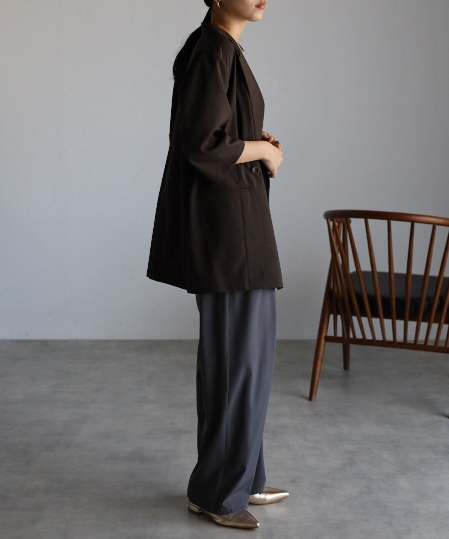 ウエストのタックはお腹周りにゆとりを作り、体型カバーも叶う優秀ディテール。