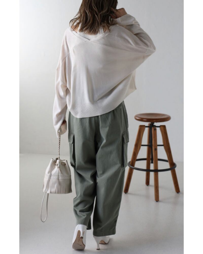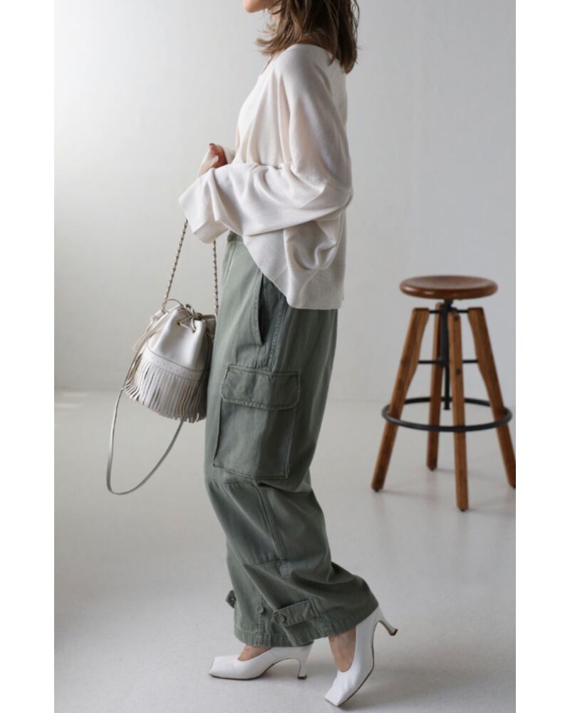 コンパクトな女性らしいトップスをインしたり、あえて女性らしく穿きこなしたいワークパンツです。