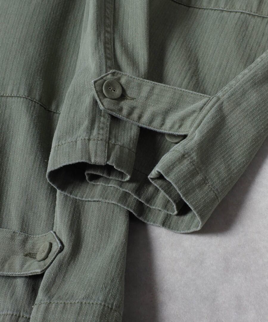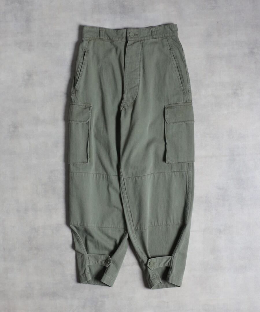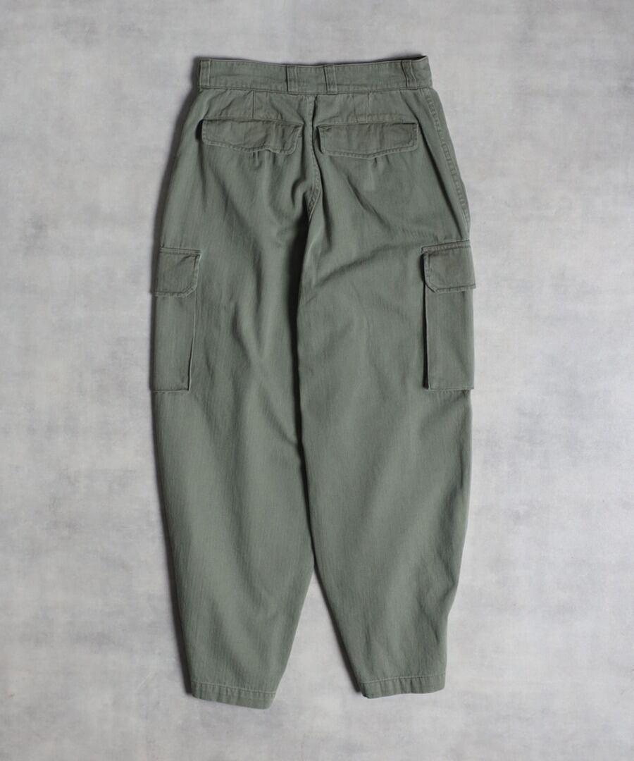 ミリタリー感のあるヘリンボーン素材が本格的なカーゴパンツ