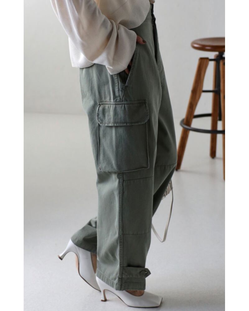 ミリタリー感たっぷりな、しっかりめのヘリンボーン生地がメンズライクなカーゴパンツ。