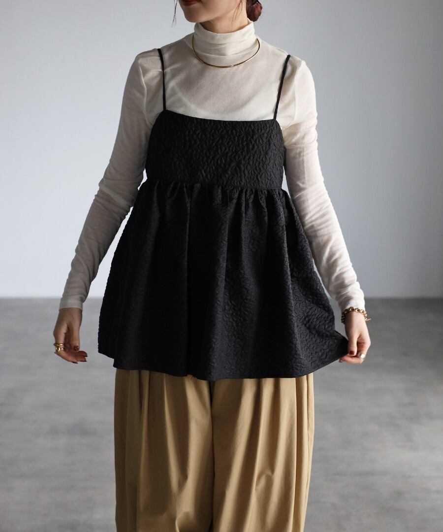 中にキャミを合わせたり、上にニットやスウェットを重ねたりと様々なレイヤードが楽しめます。