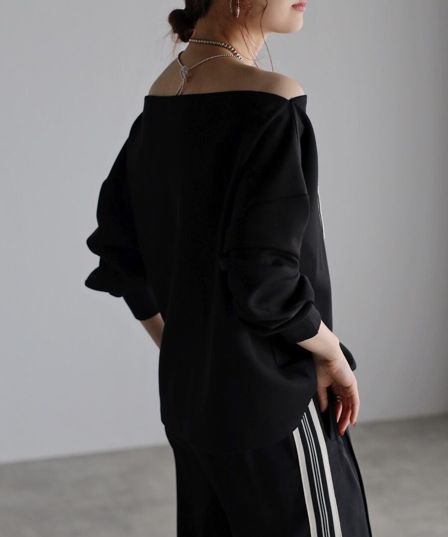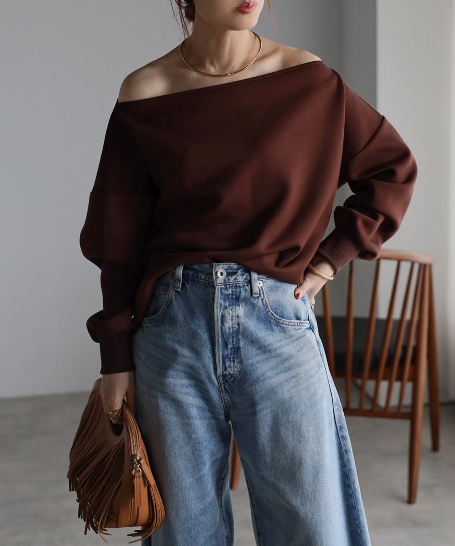 トレンド感のあるオフショルデザインが大人の魅力を引き立てるセンシュアルなプルオーバー。