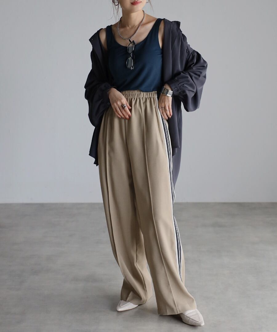 ゆったりしたサイズ感で、華やかなギャザーとしなやかな雰囲気が女性らしい大人スタイルを演出します。
