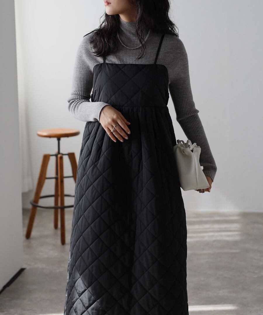 ダイヤ柄のキルトがふんわり女性らしいキャミワンピース