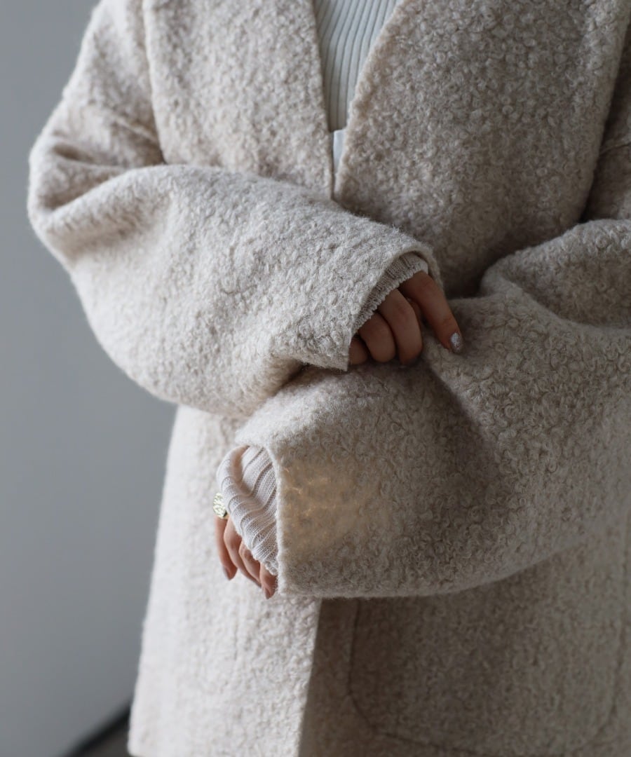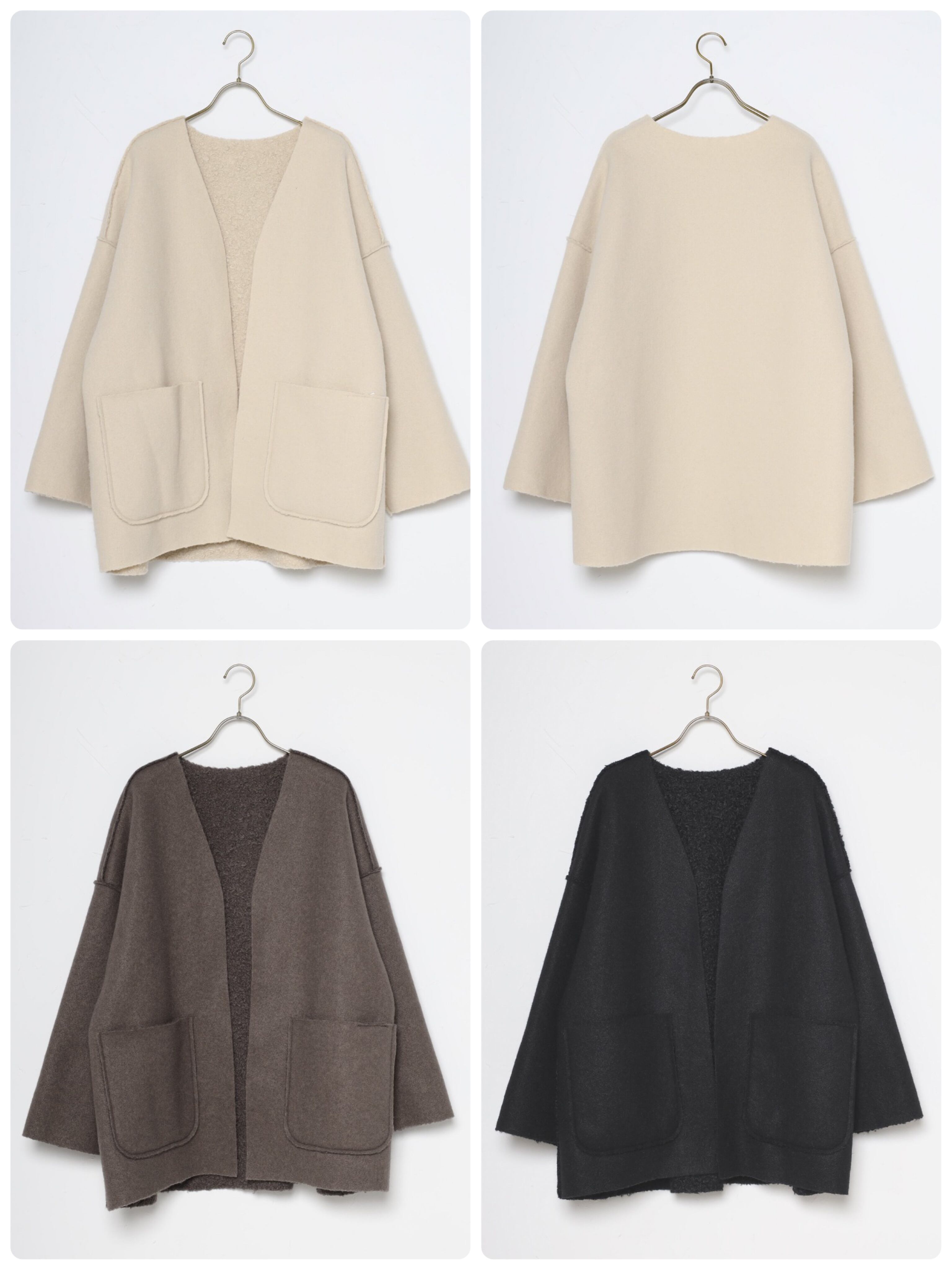 あたたかみのある素材で、表面感のあるブークレーとリバーシブルで着用できる優秀デザイン。