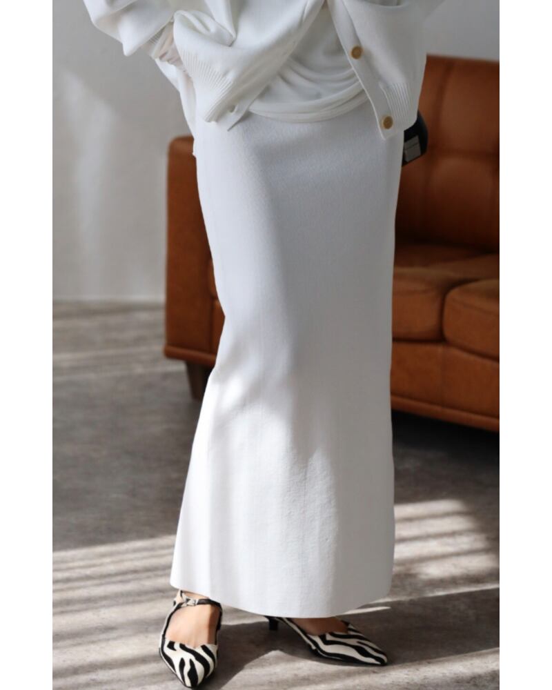 すっきりと綺麗なシルエットで着回しやすいニットロングスカート。