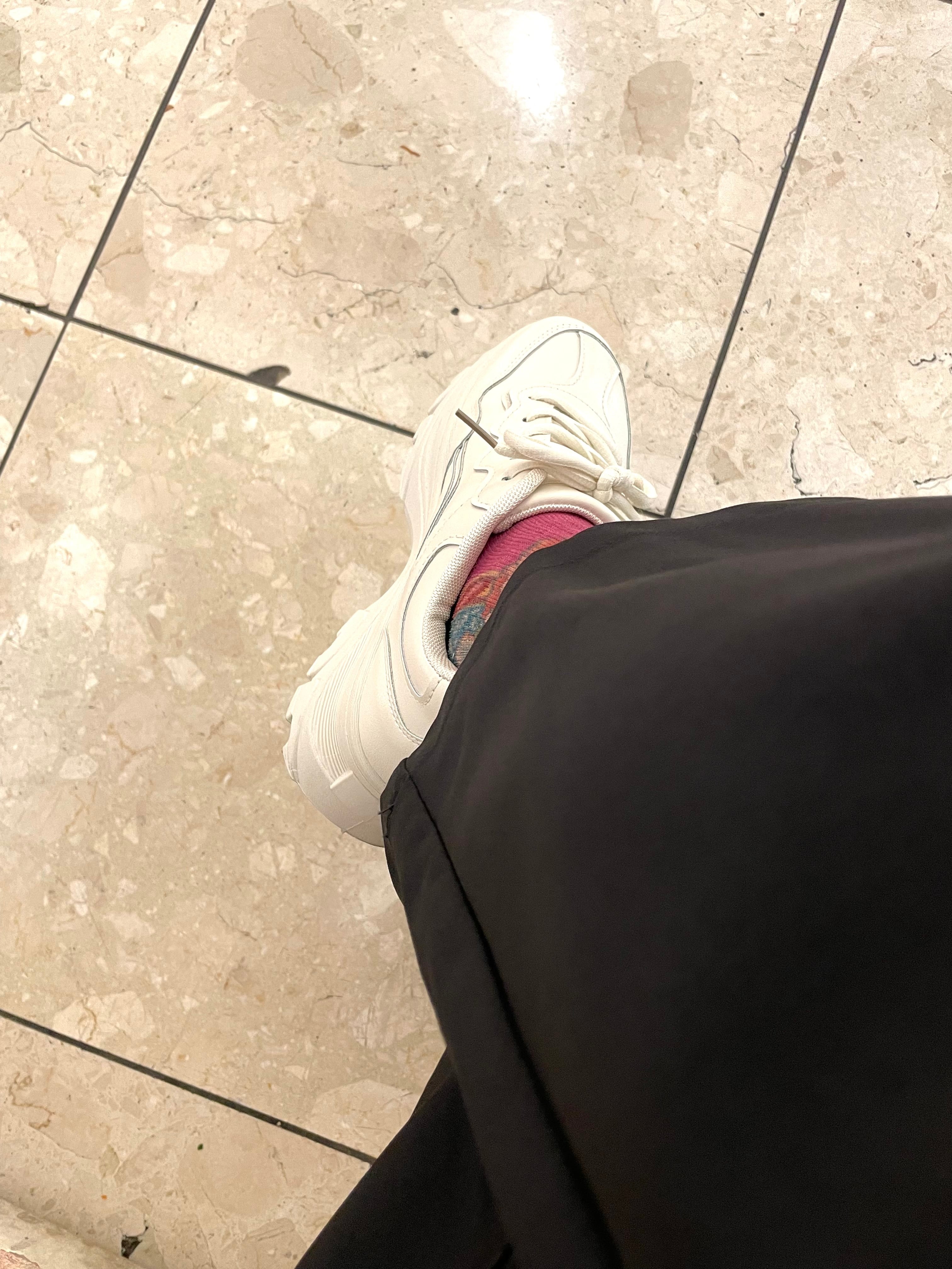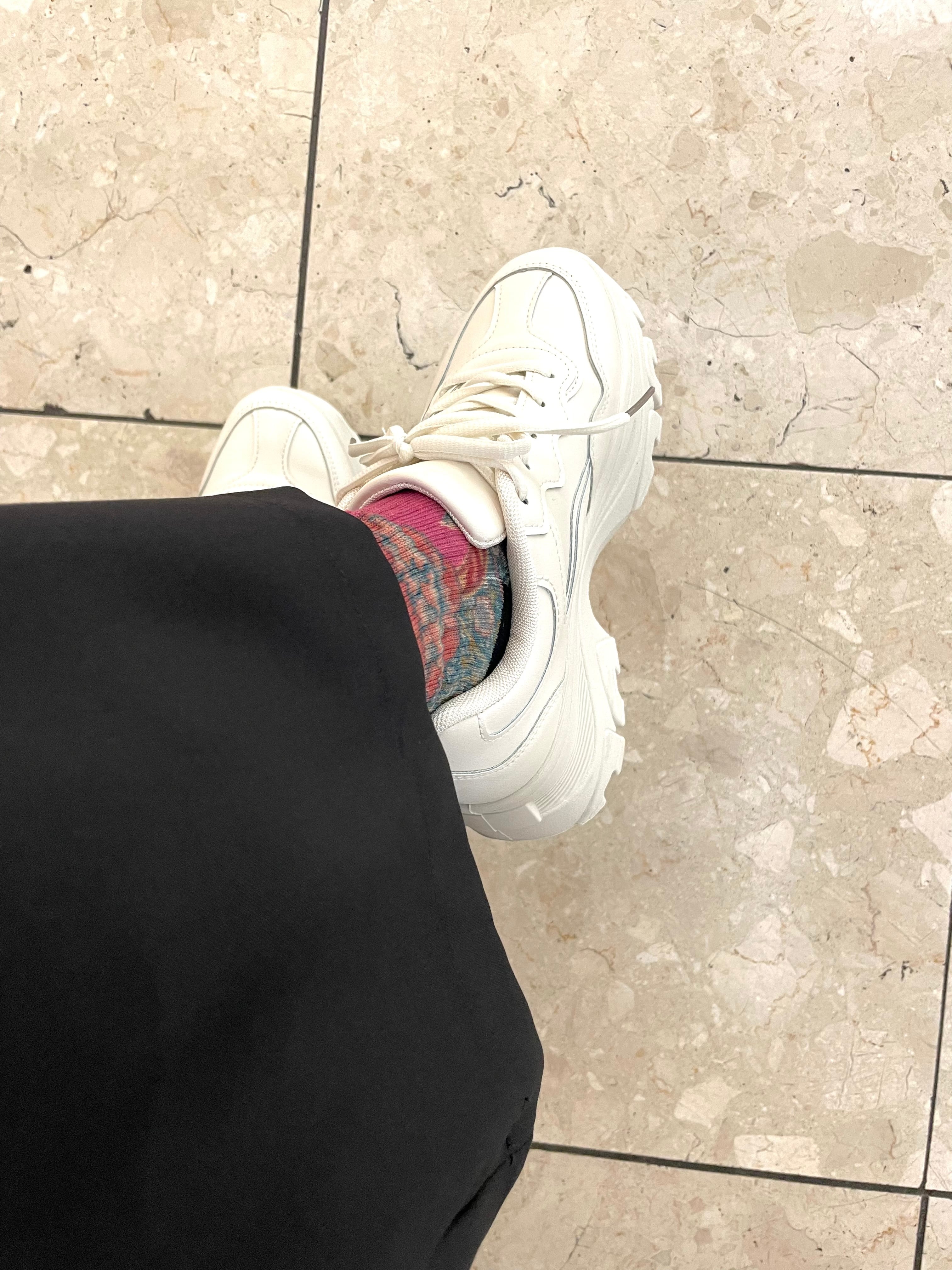 ⚠️ 靴下は丸編み機で作られているため、まっすぐなラインは作れないため、デザインに段差は出てきます。