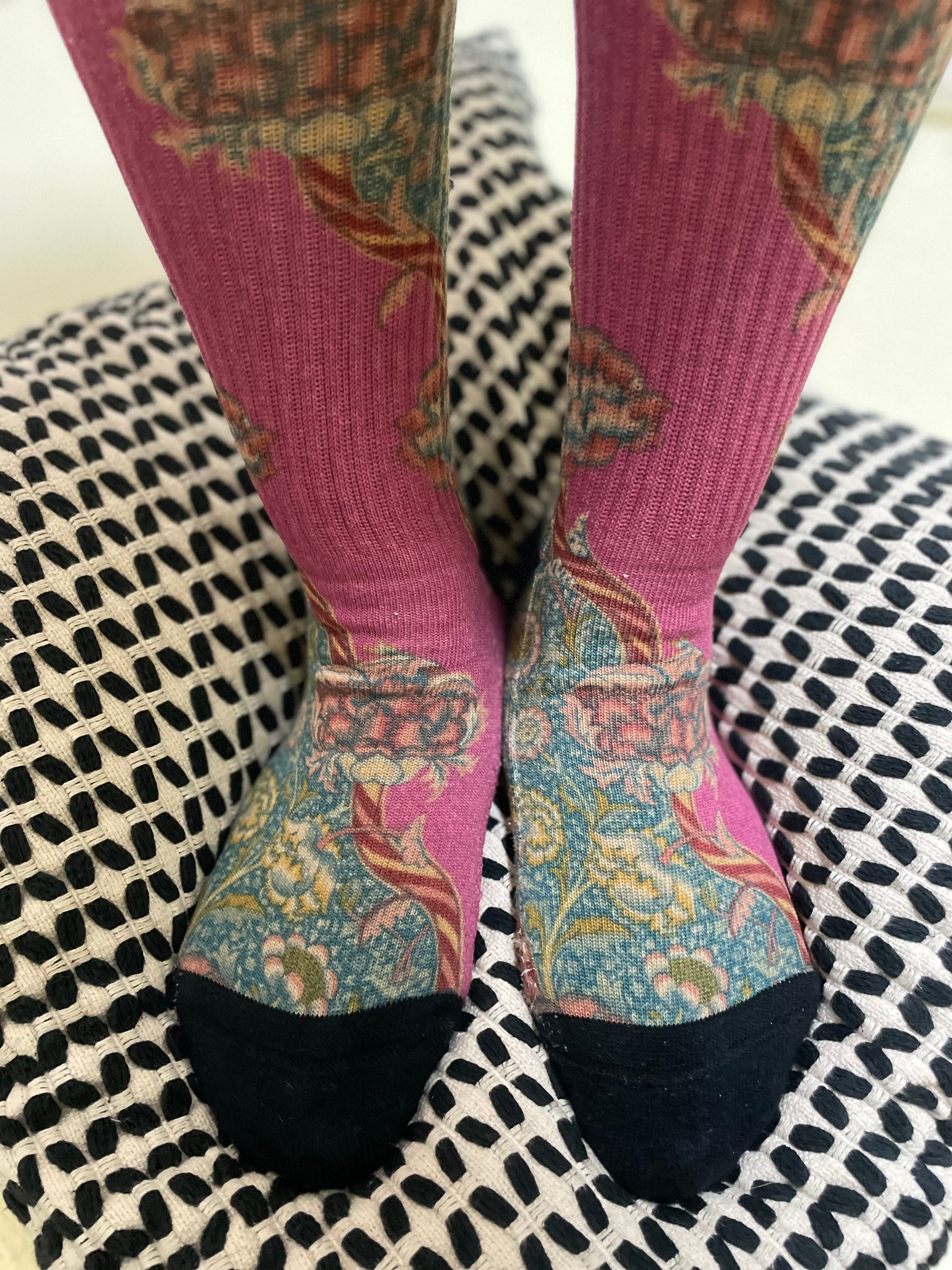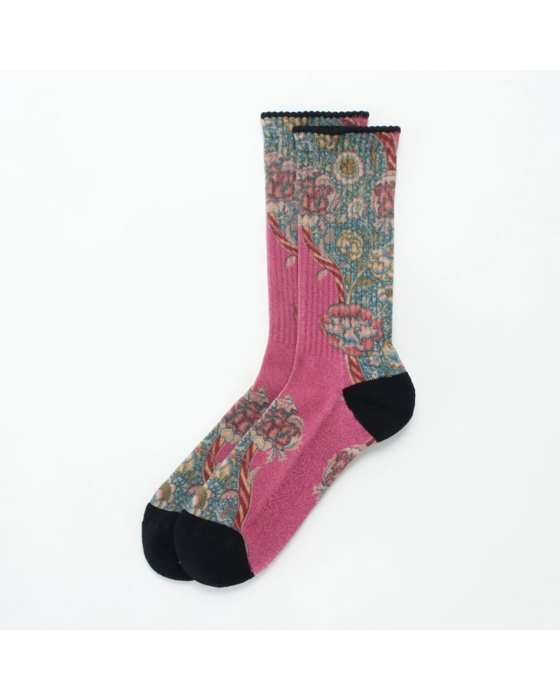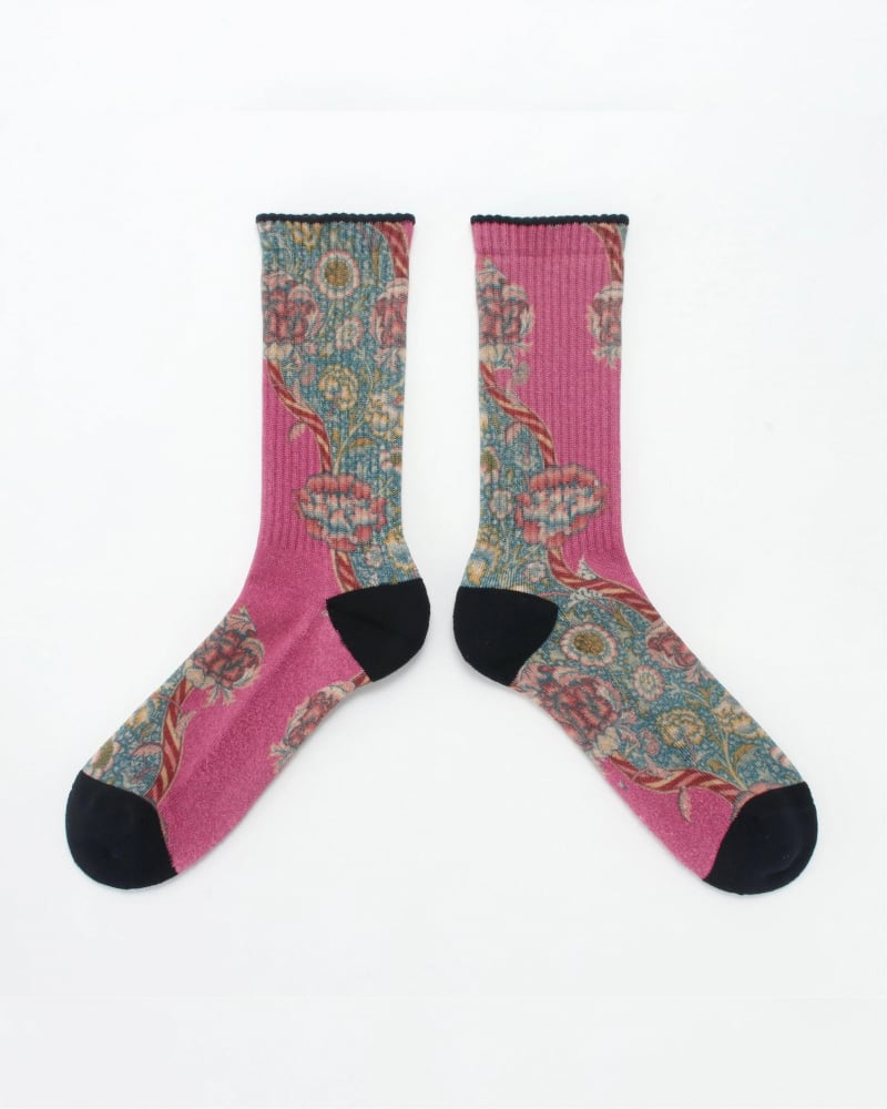 イギリスのテムズ川支流の名前をつけた「川」シリーズの作品をはじめ、ウィリアム・モリスの描く自然の代表作にHOiSUMらしいアレンジを加えた靴下が完成しました。