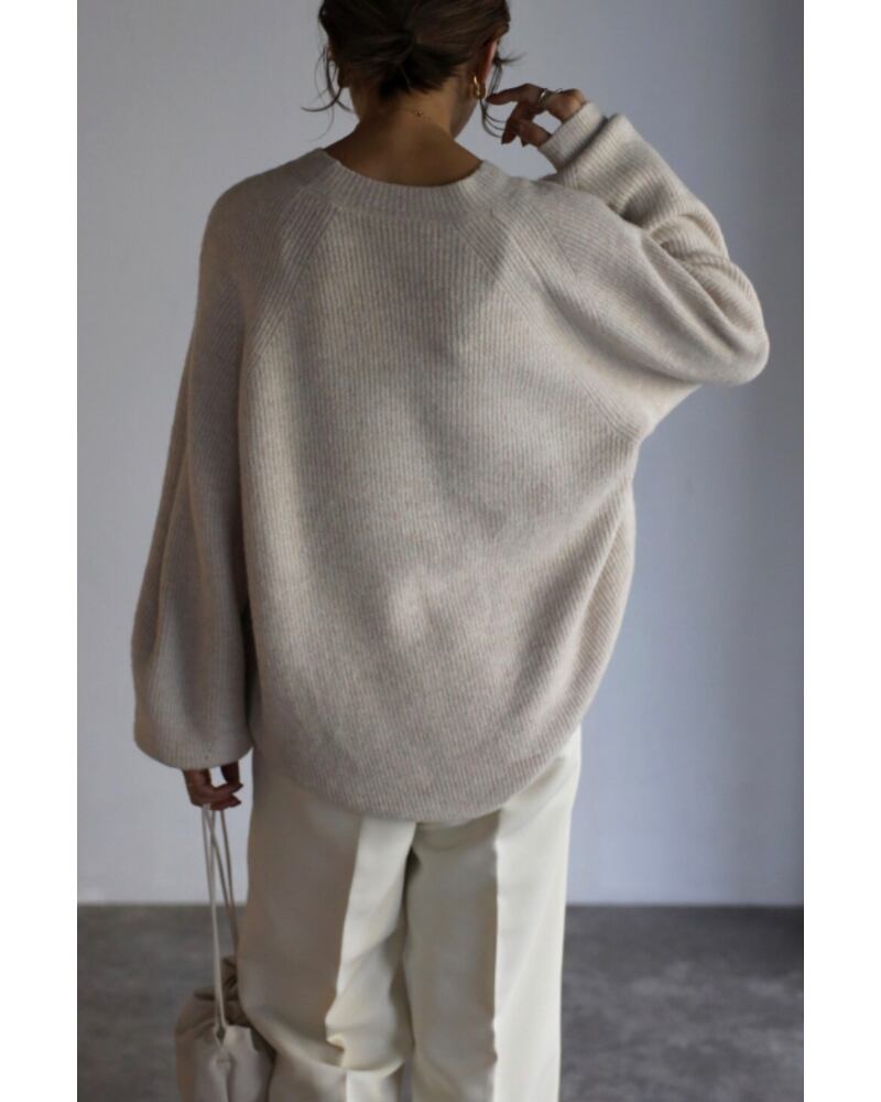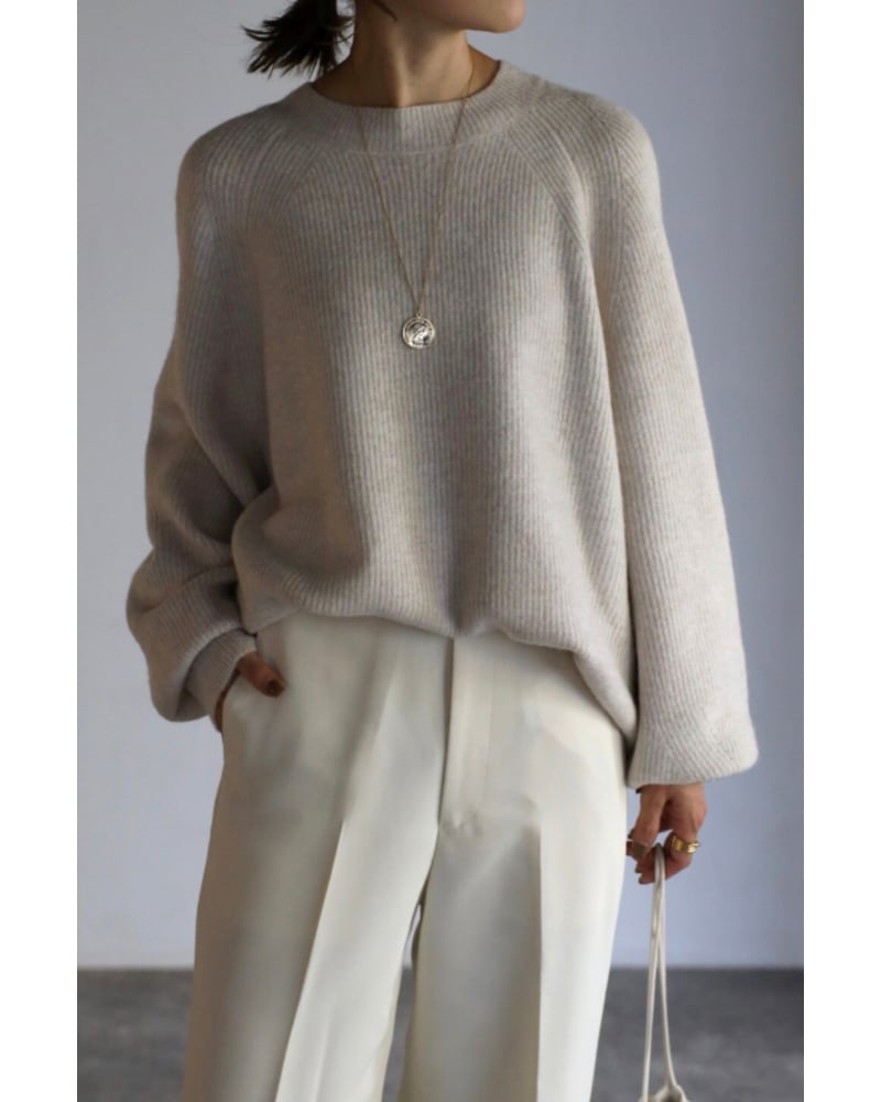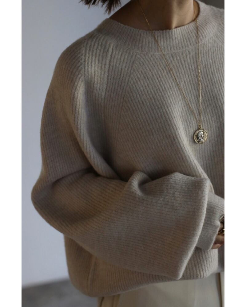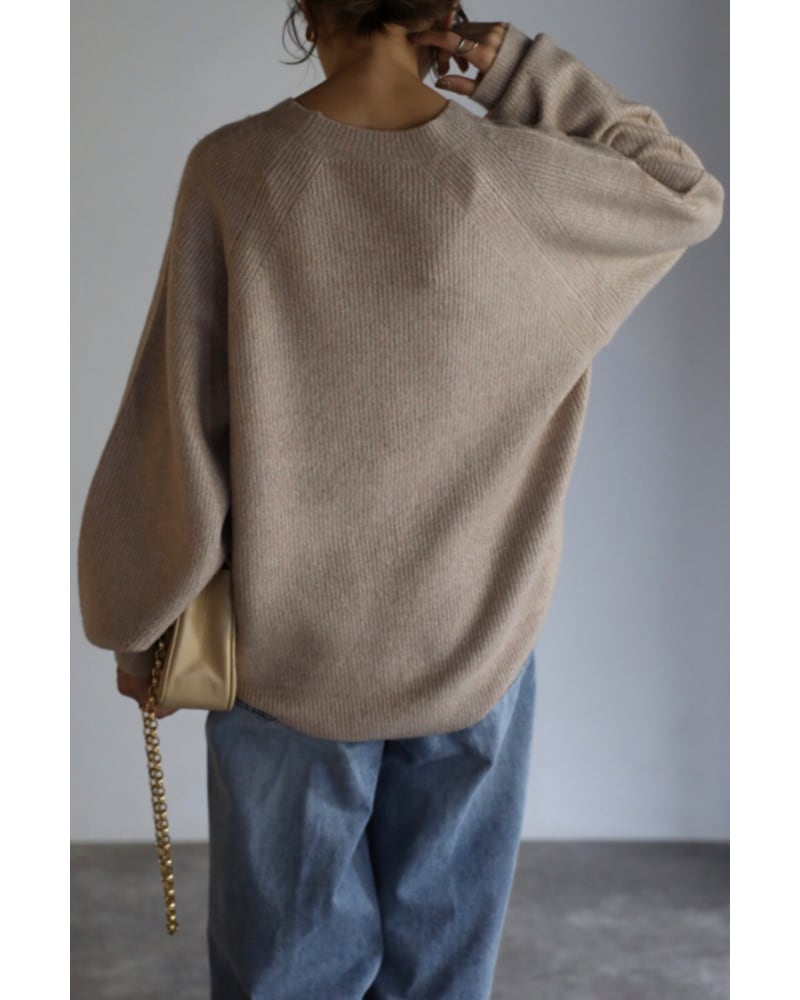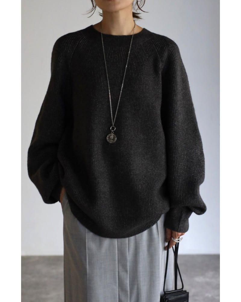 ふっくらとしたリブ編みのラグランニットプルオーバー