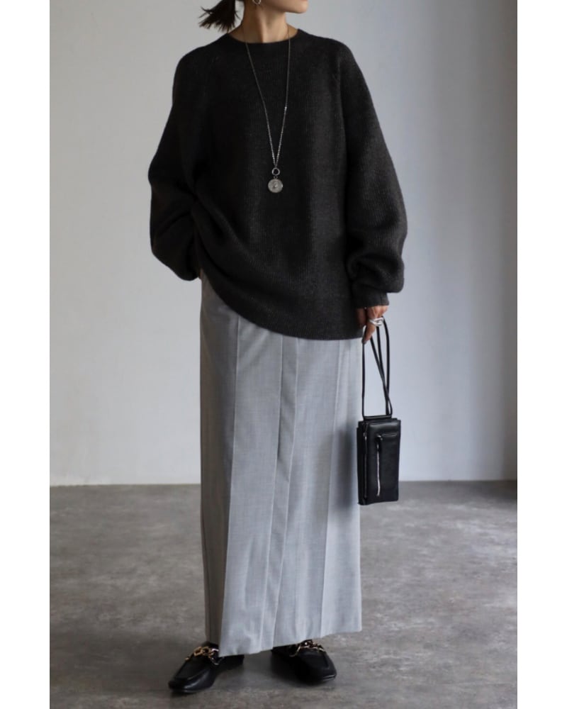 しっかりと肉厚な編み地なので体のラインを拾いすぎない素材感。