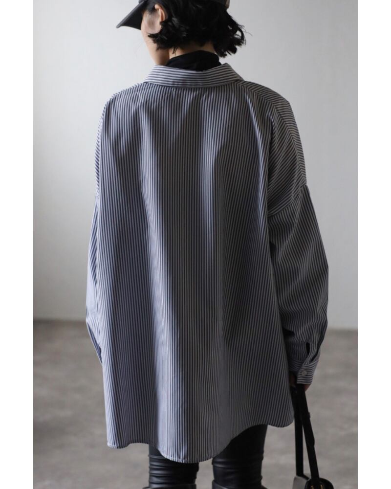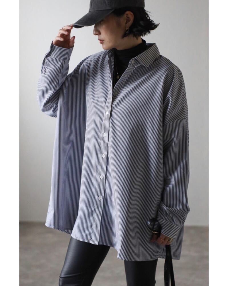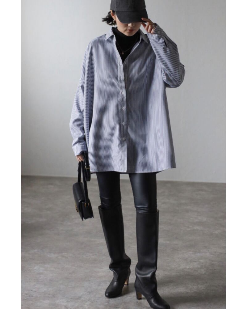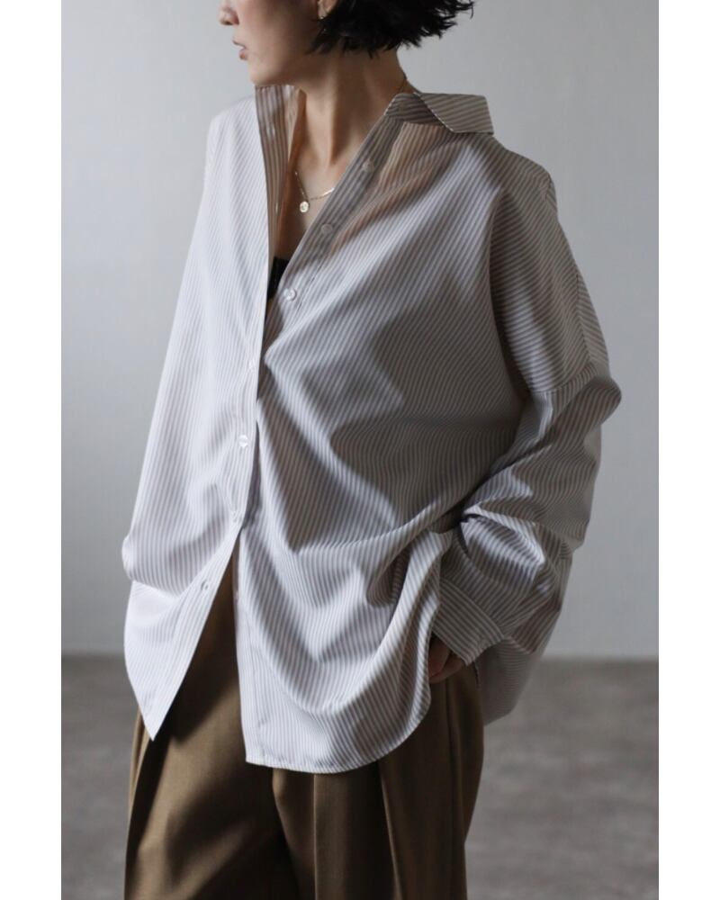 シンプルながら、ゆったりとしたサイズ感と高級感のあるストライプ柄が印象的なビッグシャツ。