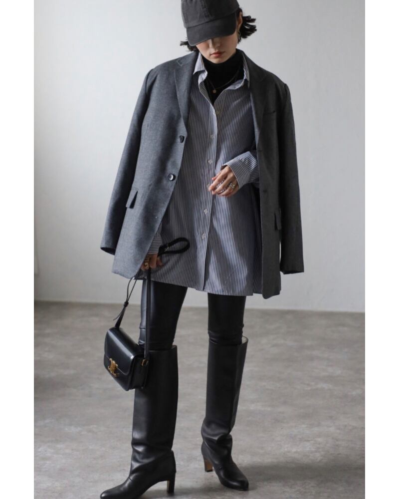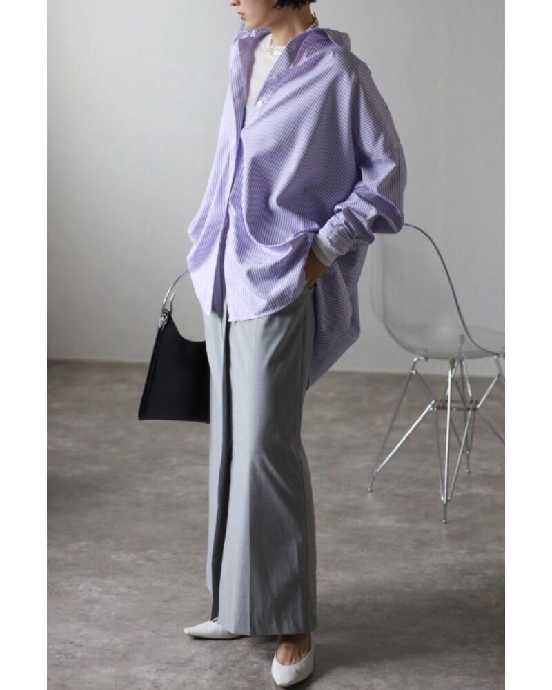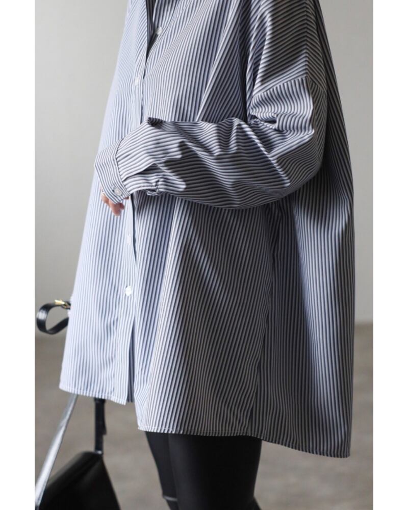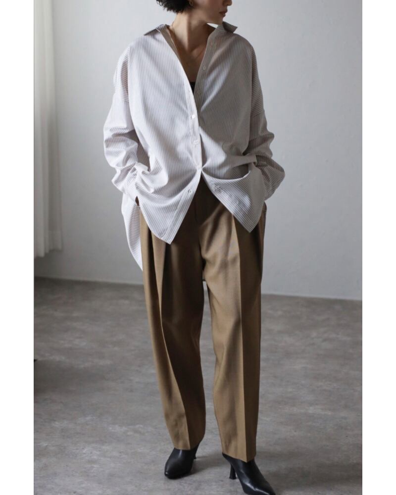 シンプルながら、ゆったりとしたサイズ感と高級感のあるストライプ柄が印象的なビッグシャツ。