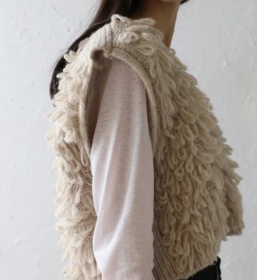 革新的なループ編みデザインが特徴のスタイリッシュなベスト。