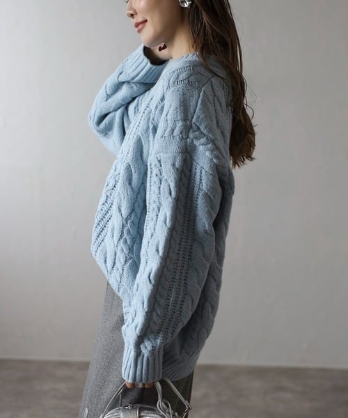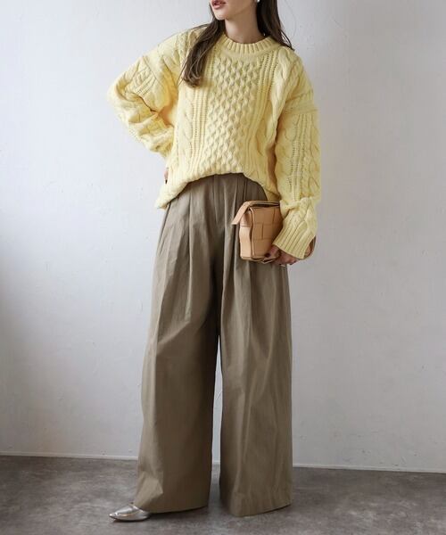 立体感のある編み地が温かみを演出するニットプルオーバー。