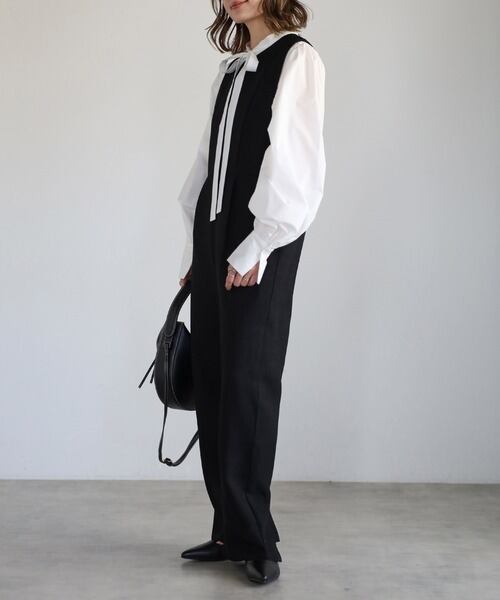 スリーブレスデザインが洗練された印象を与えるオールインワン。